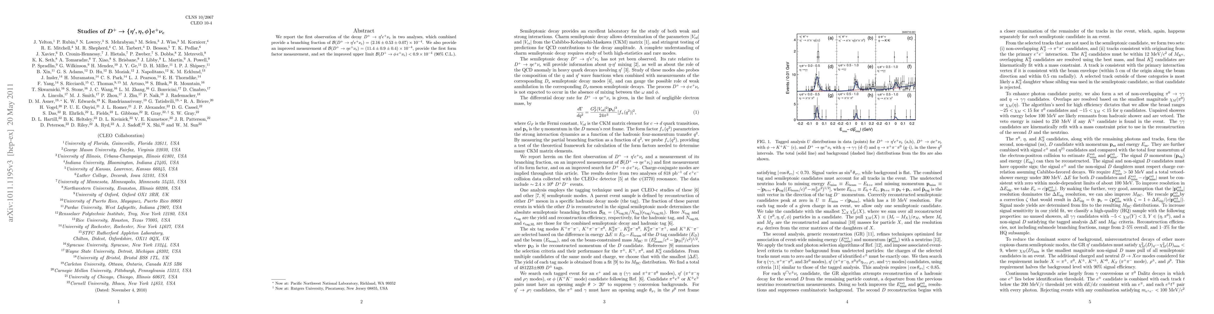 The paper presents the first observation of the decay D+ -> eta' e+ nu, measuring its branching fraction as (2.16 +/- 0.53 +/- 0.07) x 10^{-4}. It also improves the measurement of D+ -> eta e nu to (11.4 +/- 0.9 +/- 0.4) x 10^{-4}, offers the first form factor measurement for this decay, and sets a stricter upper limit for D+ -> phi e nu at 0.9 x 10^{-4} (90% C.L).