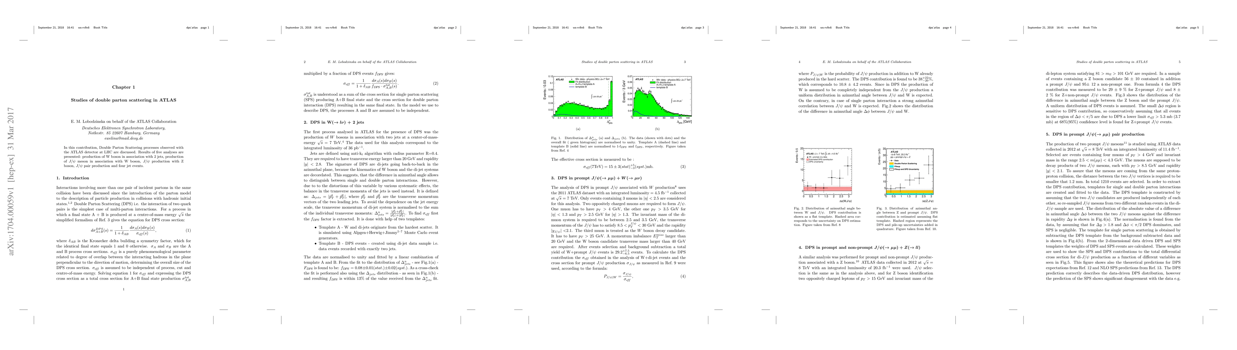 This paper discusses Double Parton Scattering processes observed in the ATLAS detector at the LHC, presenting results from five analyses including W boson with 2 jets, J/psi meson with W boson, J/psi with Z boson, J/psi pair production, and four jet events.