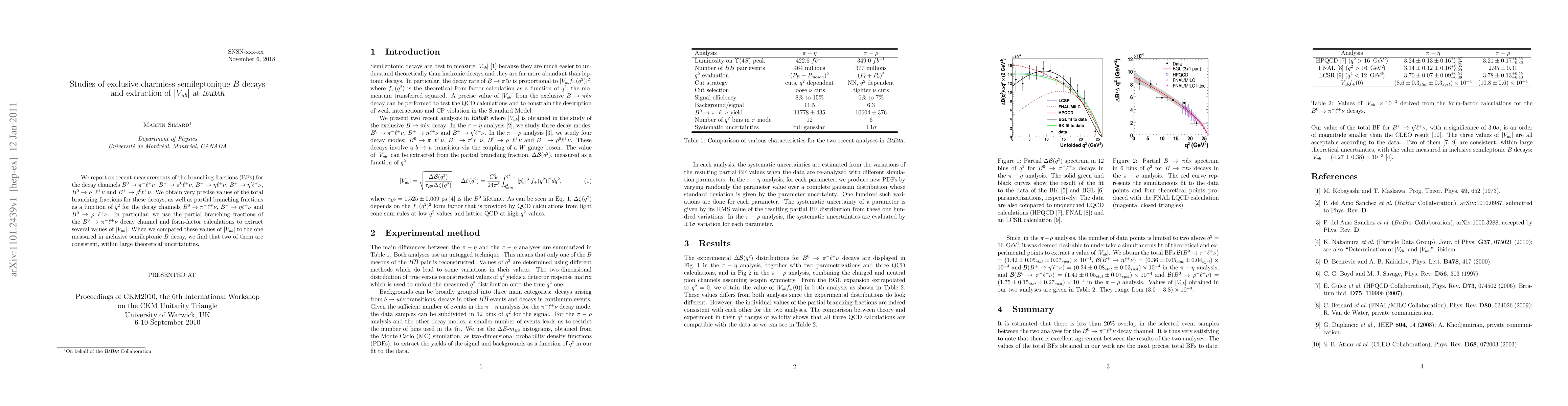 We report on recent measurements of the branching fractions (BFs) for the decay channels B^0 -> {\pi}^-\l^+{\nu}, B^+ -> {\pi}^0\l^+{\nu}, B^+ -> {\eta}\l^+{\nu}, B^+ -> {\eta}'\l^+{\nu}, B^0 -> {\rho}^-\l^+{\nu} and B^+ -> {\rho}^0\l^+{\nu}. We obtain very precise values of the total branching fractions for these decays, as well as partial branching fractions as a function of q^2 for the decay channels B^0 -> {\pi}^-\l^+{\nu}, B^+ -> {\eta}\l^+{\nu} and B^0 -> {\rho}^-\l^+{\nu}. In particular, we use the partial branching fractions of the B^0 -> {\pi}^-\l^+{\nu} decay channel and form-factor calculations to extract several values of |V_{ub}|. When we compared these values of |V_{ub}| to the one measured in inclusive semileptonic B decay, we find that two of them are consistent, within large theoretical uncertainties.