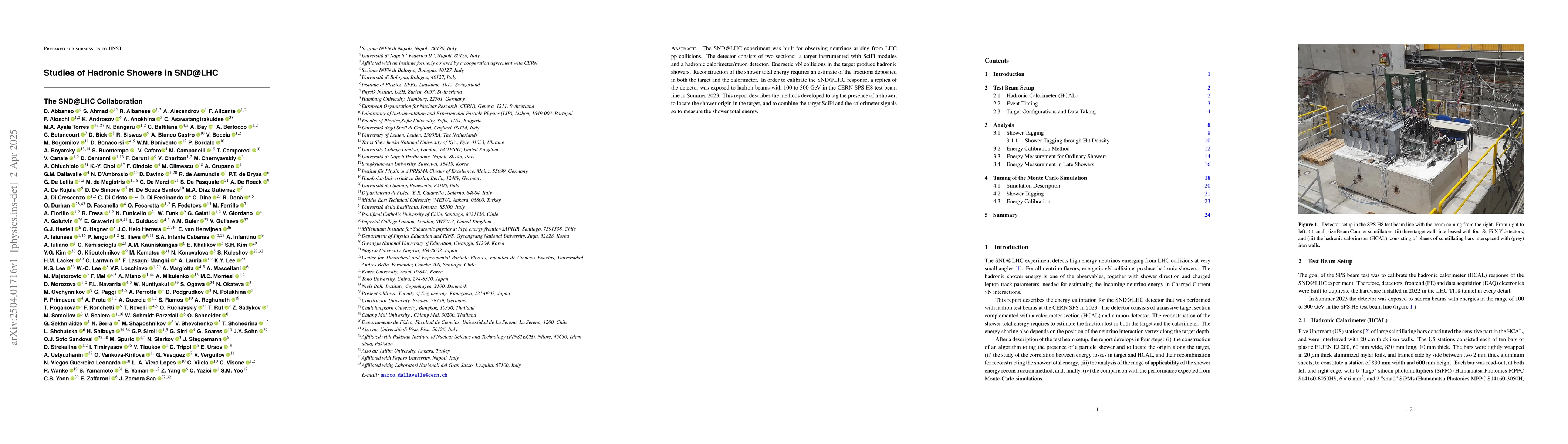 Researchers at SND@LHC used a replica of their detector to study hadronic showers produced in high-energy particle collisions. They developed methods to detect and measure the energy of these showers, which will help calibrate their neutrino detection capabilities.