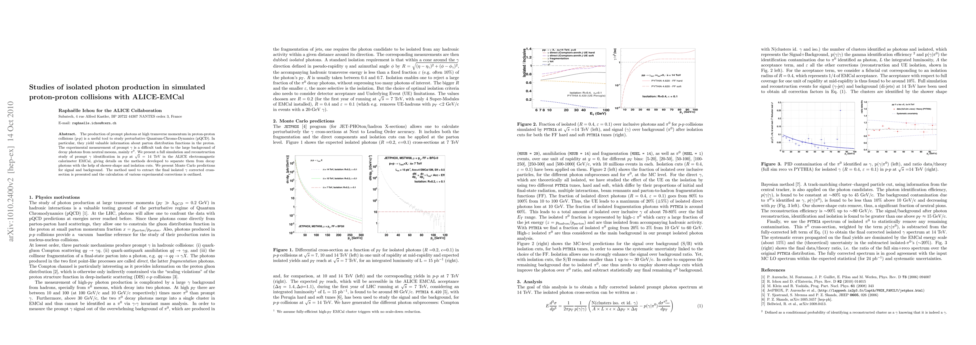 The production of prompt photons at high transverse momentum in proton-proton collisions (p-p) is a useful tool to study perturbative Quantum-Chromo-Dynamics (pQCD). In particular, they yield valuable information about parton distribution functions in the proton. The experimental measurement of prompt photons is a difficult task due to the large background of decay photons from neutral mesons, mainly pi0. We present a full simulation and reconstruction study of prompt photons identification in p-p at sqrt(s) = 14 TeV in the ALICE electromagnetic calorimeter EMCal, giving details on the methods developed to separate them from decay photons with the help of shower-shape and isolation cuts. We present Monte Carlo predictions for signal and background. The method used to extract the final isolated corrected cross-section is presented and the calculation of various experimental corrections is outlined.