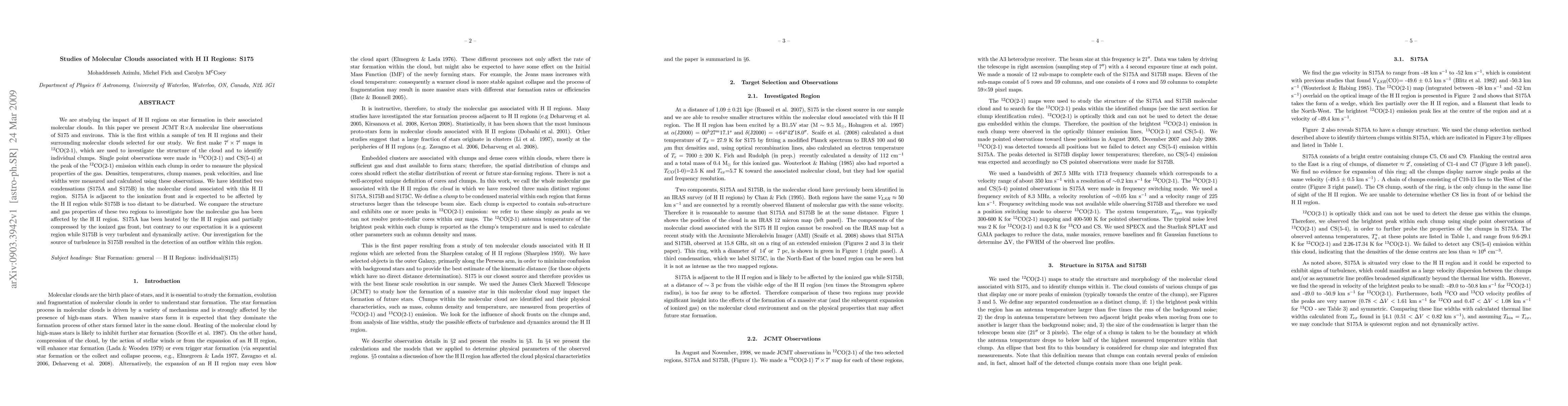This study examines the effect of HII regions on nearby molecular clouds using S175 as a case. With JCMT RxA observations, two condensations (S175A and S175B) were identified. S175A, near the ionization front, is unexpectedly quiescent despite heating and compression, while S175B, farther away, is turbulent with an identified outflow, indicating dynamic activity.