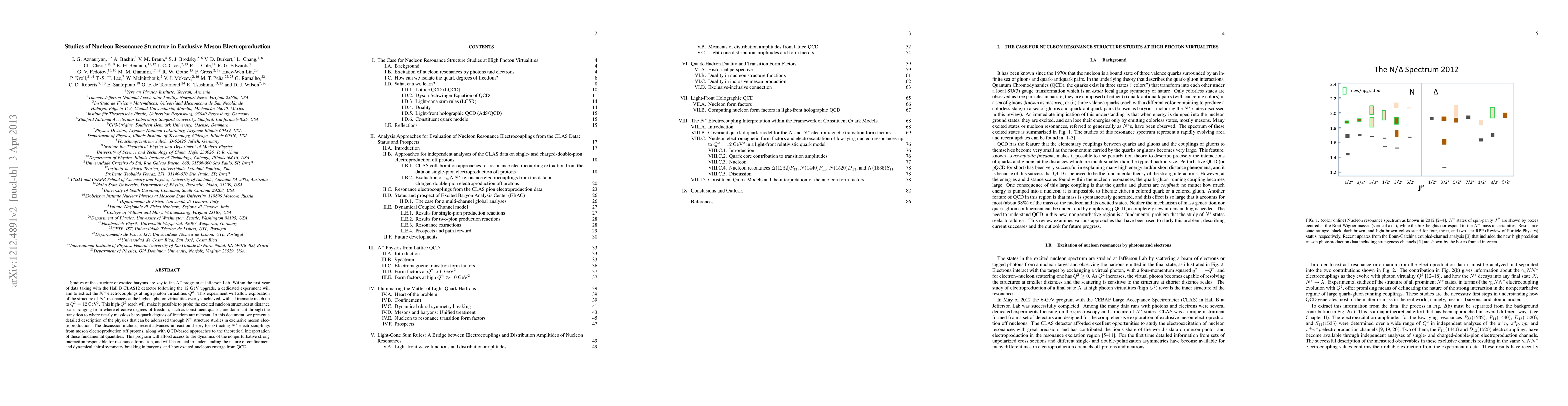 Studies of the structure of excited baryons are key to the N* program at Jefferson Lab. Within the first year of data taking with the Hall B CLAS12 detector following the 12 GeV upgrade, a dedicated experiment will aim to extract the N* electrocouplings at high photon virtualities Q2. This experiment will allow exploration of the structure of N* resonances at the highest photon virtualities ever yet achieved, with a kinematic reach up to Q2 = 12 GeV2. This high-Q2 reach will make it possible to probe the excited nucleon structures at distance scales ranging from where effective degrees of freedom, such as constituent quarks, are dominant through the transition to where nearly massless bare-quark degrees of freedom are relevant. In this document, we present a detailed description of the physics that can be addressed through N* structure studies in exclusive meson electroproduction. The discussion includes recent advances in reaction theory for extracting N* electrocouplings from meson electroproduction off protons, along with QCD-based approaches to the theoretical interpretation of these fundamental quantities. This program will afford access to the dynamics of the non-perturbative strong interaction responsible for resonance formation, and will be crucial in understanding the nature of confinement and dynamical chiral symmetry breaking in baryons, and how excited nucleons emerge from QCD.