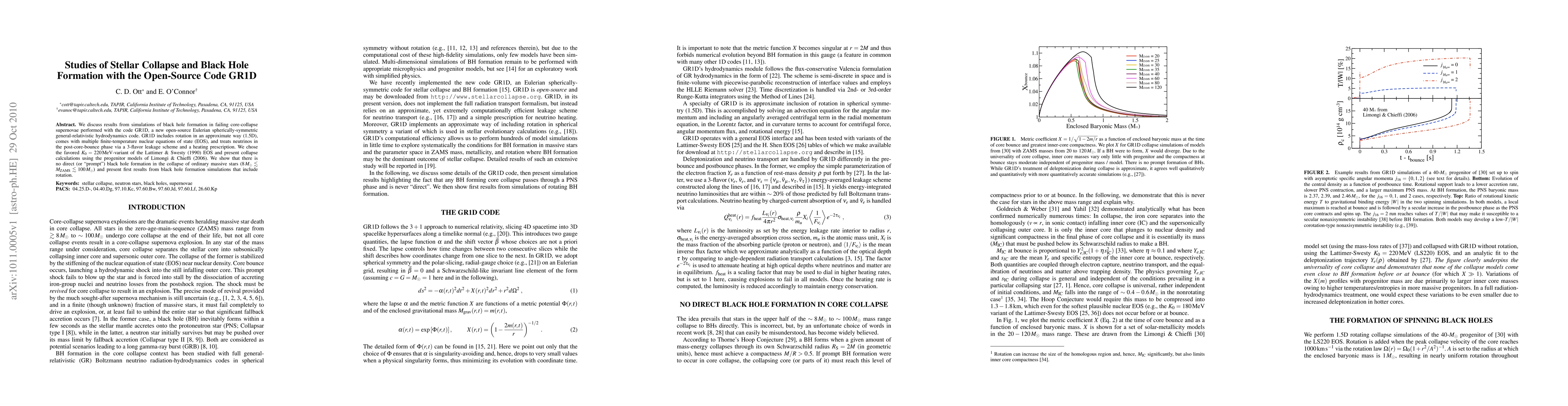 We discuss results from simulations of black hole formation in failing core-collapse supernovae performed with the code GR1D, a new open-source Eulerian spherically-symmetric general-relativistic hydrodynamics code. GR1D includes rotation in an approximate way (1.5D), comes with multiple finite-temperature nuclear equations of state (EOS), and treats neutrinos in the post-core-bounce phase via a 3-flavor leakage scheme and a heating prescription. We chose the favored K_0=220 MeV-variant of the Lattimer & Swesty (1990) EOS and present collapse calculations using the progenitor models of Limongi & Chieffi (2006). We show that there is no direct (or ``prompt'') black hole formation in the collapse of ordinary massive stars (8 M_Sun ~< M_ZAMS ~< 100 M_Sun) and present first results from black hole formation simulations that include rotation.