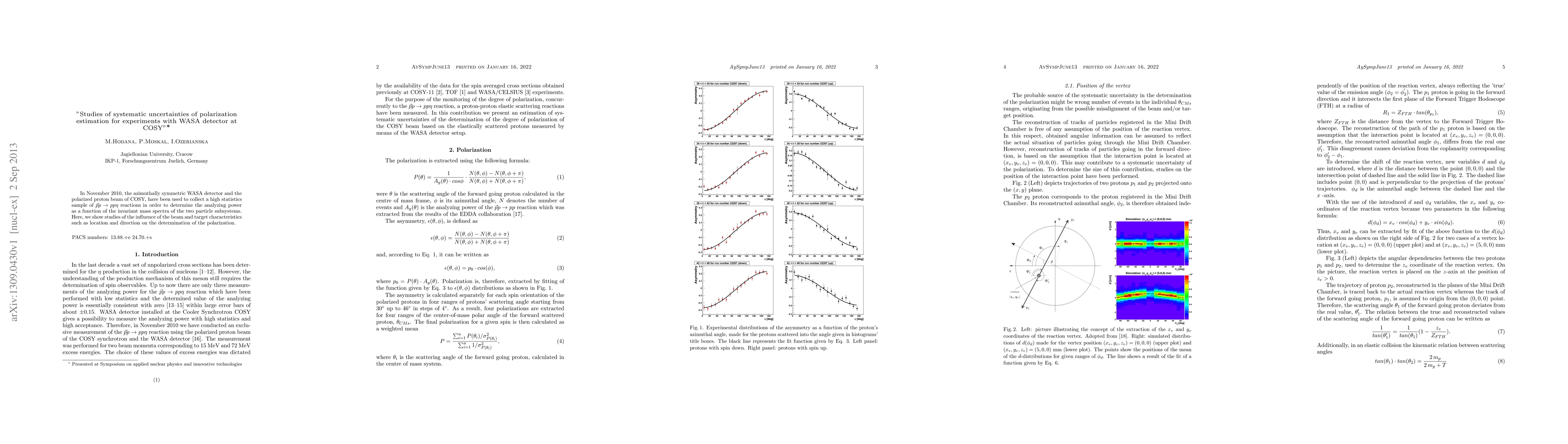In November 2010, the azimuthally symmetric WASA detector and the polarized proton beam of COSY, have been used to collect a high statistics sample of $\vec{p}p \rightarrow pp\eta$ reactions in order to determine the analyzing power as a function of the invariant mass spectra of the two particle subsystems. Here, we show studies of the influence of the beam and target characteristics such as location and direction on the determination of the polarization.