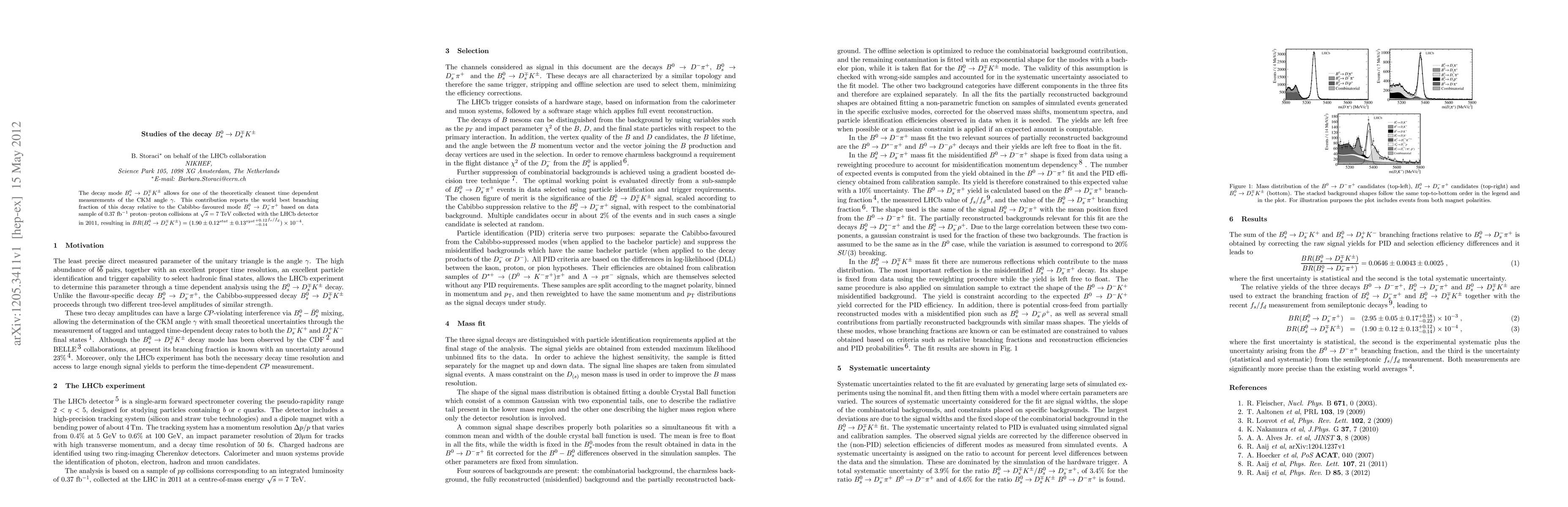 The decay mode $B^{0}_{s} \to D^{\mp}_s K^{\pm}$ allows for one of the theoretically cleanest time dependent measurements of the CKM angle $\gamma$. This contribution reports the world best branching fraction of this decay relative to the Cabibbo--favoured mode $B^{0}_{s} \to D_{s}^{-}\pi^{+}$ based on data sample of 0.37 $\rm fb^{-1}$ proton--proton collisions at $\sqrt{s} = 7$ TeV collected with the LHCb detector in 2011, resulting in $BR(\BsDK) = (1.90 \pm 0.12^{stat} \pm {{0.13^{syst}}^{+0.12}_{-0.14}}^{f_{s}/f_{d}})\times 10^{-4}$.