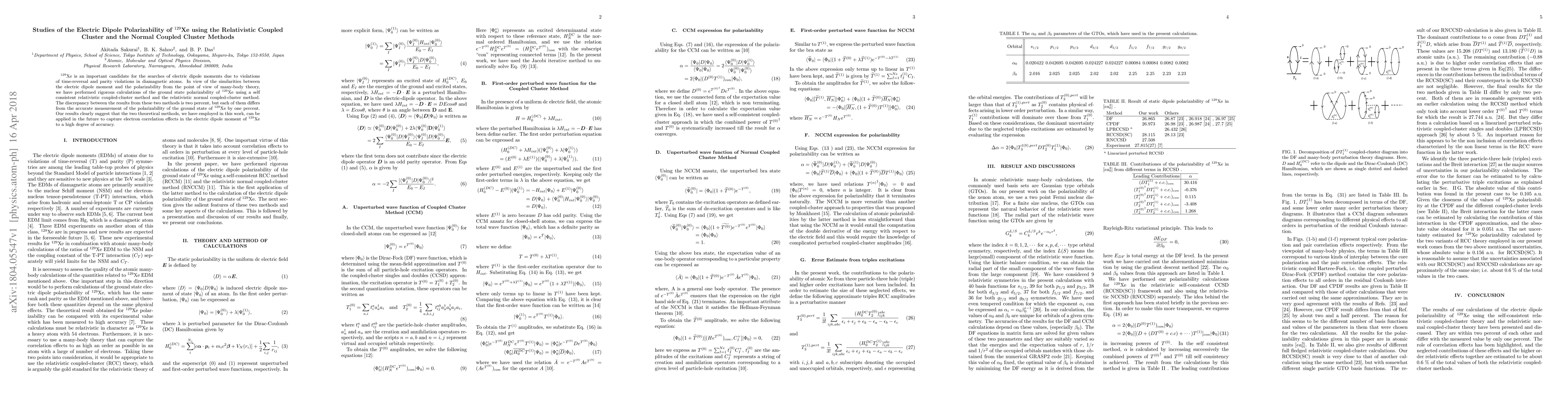 This paper investigates the electric dipole polarizability of $^{129}$Xe using relativistic coupled-cluster and normal coupled-cluster methods, finding a two percent discrepancy between the two. Both methods differ from experimental measurements by one percent, indicating potential for future high-accuracy calculations of the electric dipole moment.