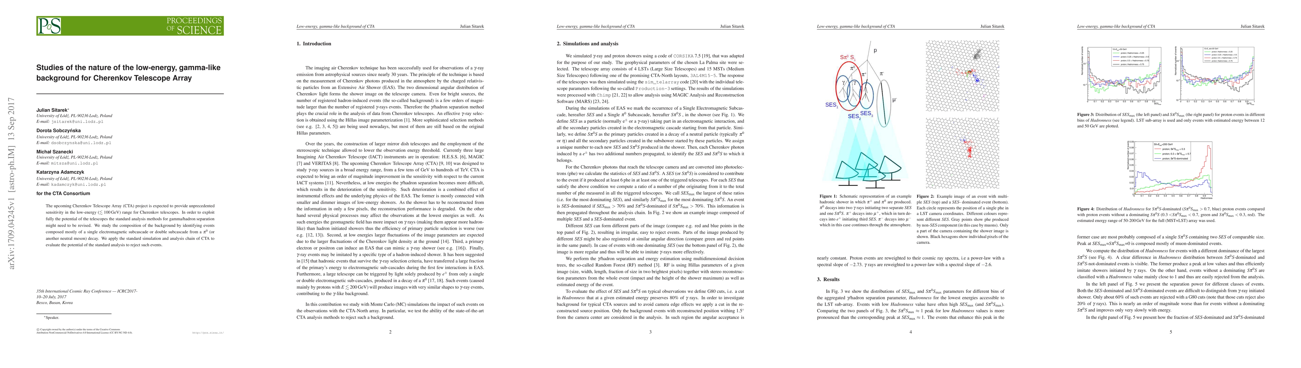 This paper investigates the low-energy gamma-like background for the Cherenkov Telescope Array (CTA) to enhance its sensitivity in the low-energy range. It evaluates the effectiveness of standard analysis methods in separating gamma events from hadrons by simulating events from neutral meson decays.