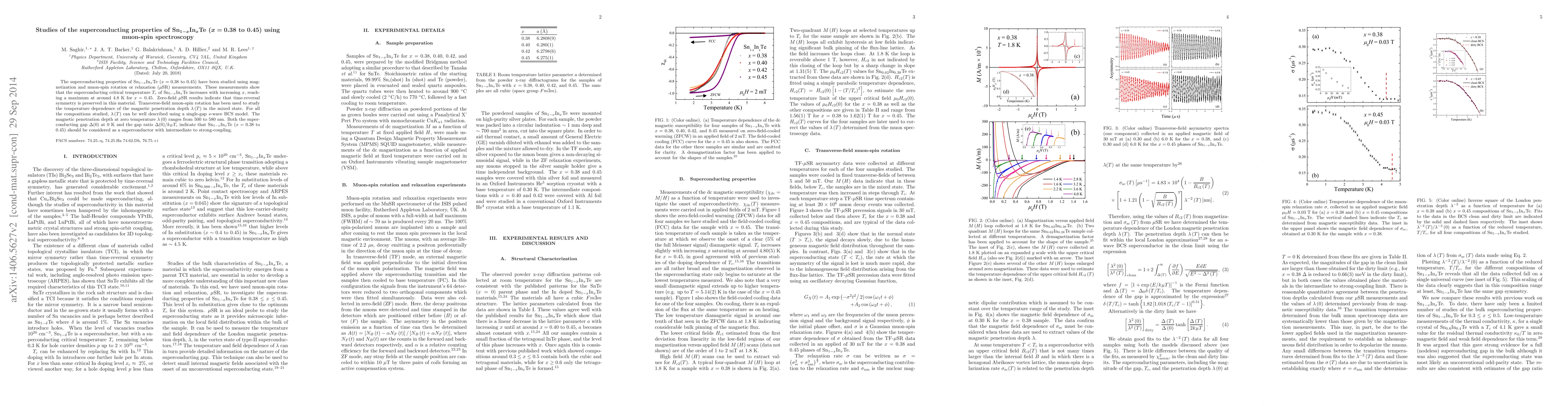 This study investigates the superconducting properties of Sn1-xInxTe (x = 0.38 to 0.45) using muon-spin spectroscopy, revealing an increase in critical temperature Tc to a maximum of 4.8 K at x = 0.45. The material preserves time-reversal symmetry and exhibits a single-gap s-wave BCS model behavior.