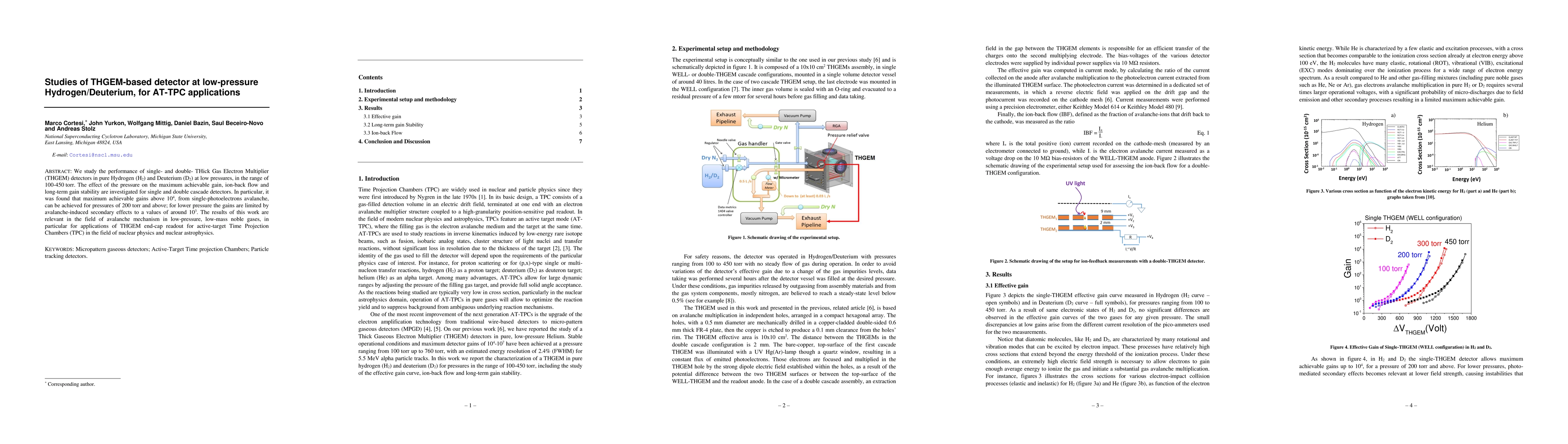 This study investigates the performance of single and double THGEM detectors in Hydrogen and Deuterium at low pressures, finding maximum achievable gains above 10^4 at pressures of 200 Torr and above, which is significant for applications in active-target Time Projection Chambers (TPC) in nuclear physics and astrophysics.