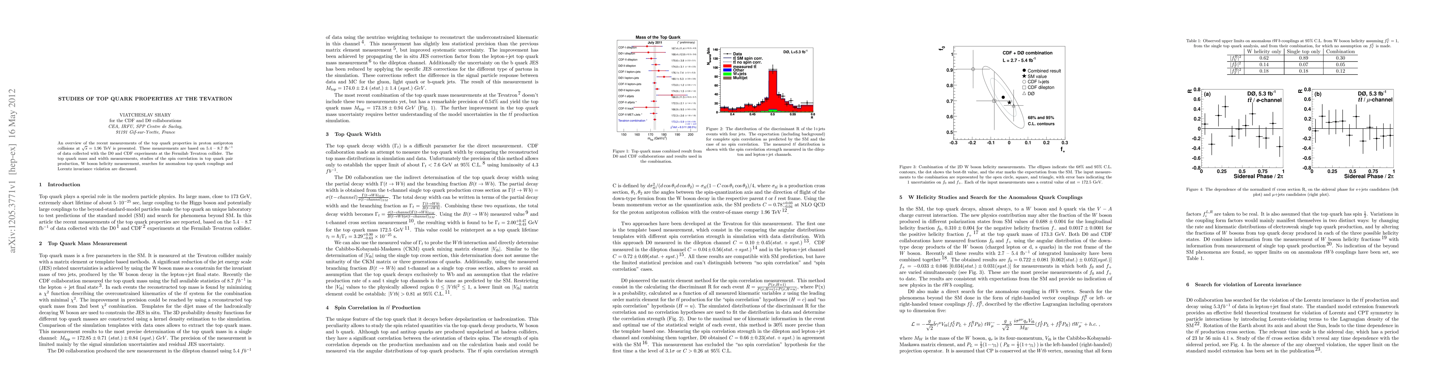 This study reviews recent measurements of top quark properties from proton-antiproton collisions at 1.96 TeV, utilizing data from the D0 and CDF experiments at the Tevatron. Key findings include analyses of top quark mass, spin correlations, W boson helicity, and searches for anomalous couplings and Lorentz invariance violations.