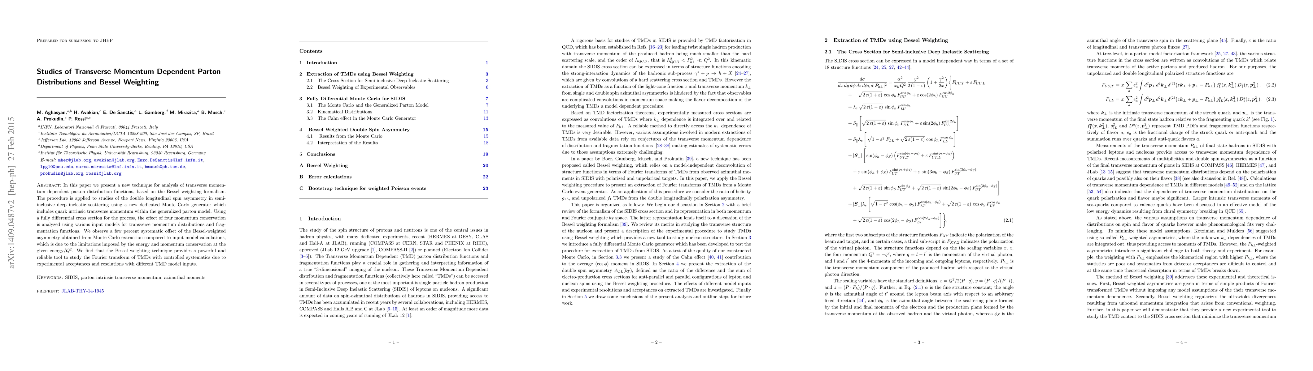 This paper introduces a Bessel weighting technique for analyzing transverse momentum dependent parton distribution functions, applied to the double longitudinal spin asymmetry in semi-inclusive deep inelastic scattering. The method reveals a few percent systematic offset due to energy and momentum conservation constraints, but demonstrates reliability and control over experimental systematics.