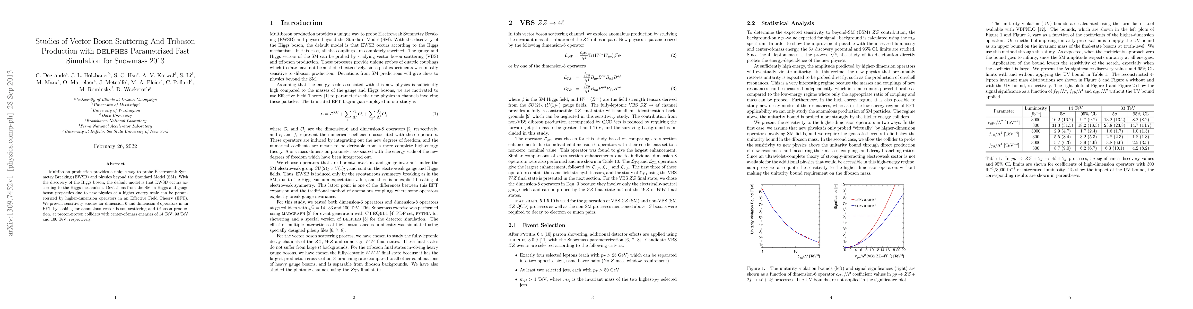 This study investigates vector boson scattering and triboson production to probe Electroweak Symmetry Breaking and potential physics beyond the Standard Model, using DELPHES for fast simulation. Sensitivity analyses for dimension-6 and dimension-8 operators in an Effective Field Theory are conducted across 14 TeV, 33 TeV, and 100 TeV proton-proton collider energies.