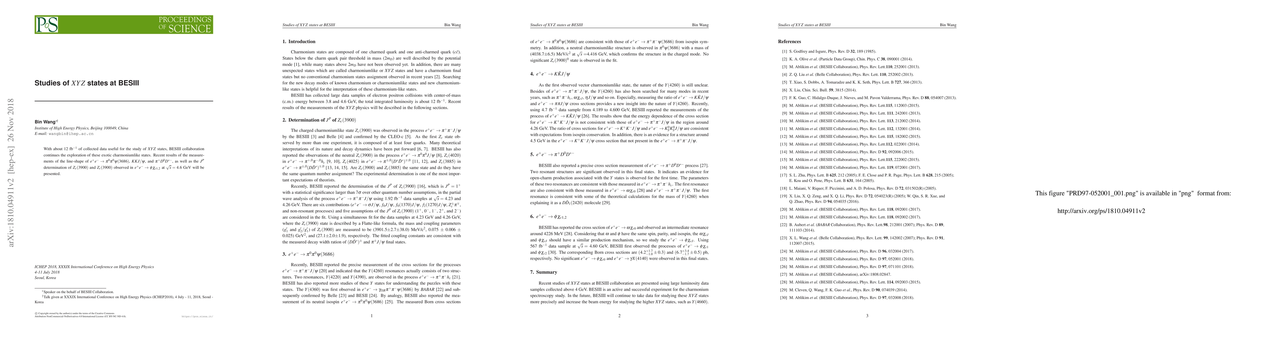 BESIII collaboration presents new measurements of exotic charmonium-like states $XYZ$ using 12 fb$^{-1}$ of data, including line-shape analyses of $e^+e^-\to\pi^0\pi^0\psi(3686)$, $KKJ/\psi$, and $\pi^+D^0D^{*-}$, and the $J^P$ determination of $Z_c(3900)$ observed in $e^+e^-\to\phi\chi_{c1, 2}$ at $\sqrt{s}=4.6$~GeV.