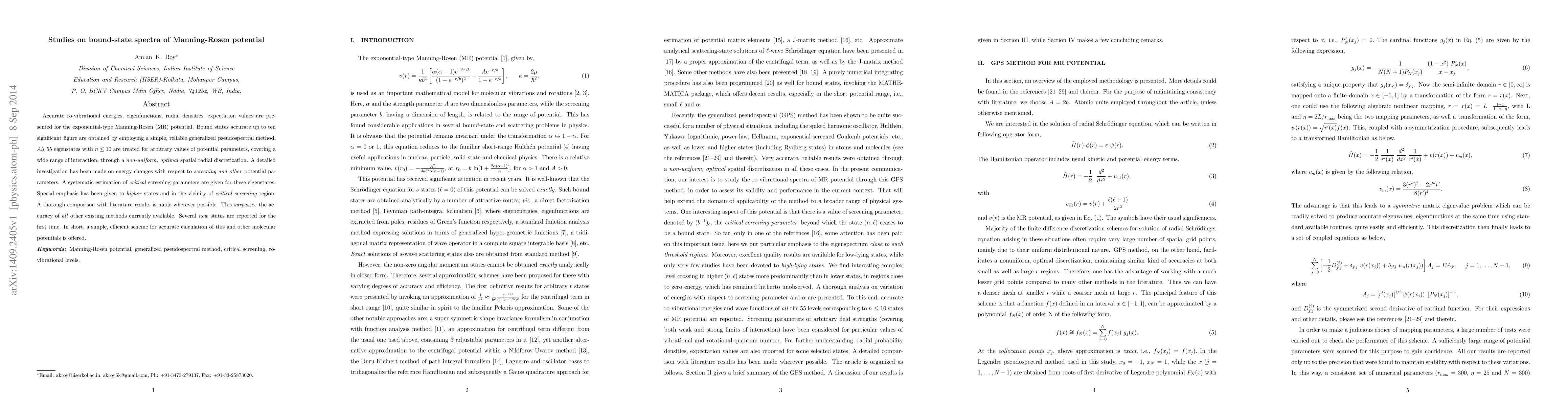 Accurate ro-vibrational energies, eigenfunctions, radial densities, expectation values are presented for the exponential-type Manning-Rosen (MR) potential. Bound states accurate up to ten significant figure are obtained by employing a simple, reliable generalized pseudospectral method. \emph{All} 55 eigenstates with $n \leq 10$ are treated for arbitrary values of potential parameters, covering a wide range of interaction, through a \emph{non-uniform, optimal} spatial radial discretization. A detailed investigation has been made on energy changes with respect to \emph{screening and other} potential parameters. A systematic estimation of \emph{critical} screening parameters are given for these eigenstates. Special emphasis has been given to \emph{higher} states and in the vicinity of \emph{critical screening} region. A thorough comparison with literature results is made wherever possible. This \emph{surpasses} the accuracy of \emph{all} other existing methods currently available. Several \emph{new} states are reported for the first time. In short, a simple, efficient scheme for accurate calculation of this and other molecular potentials is offered.