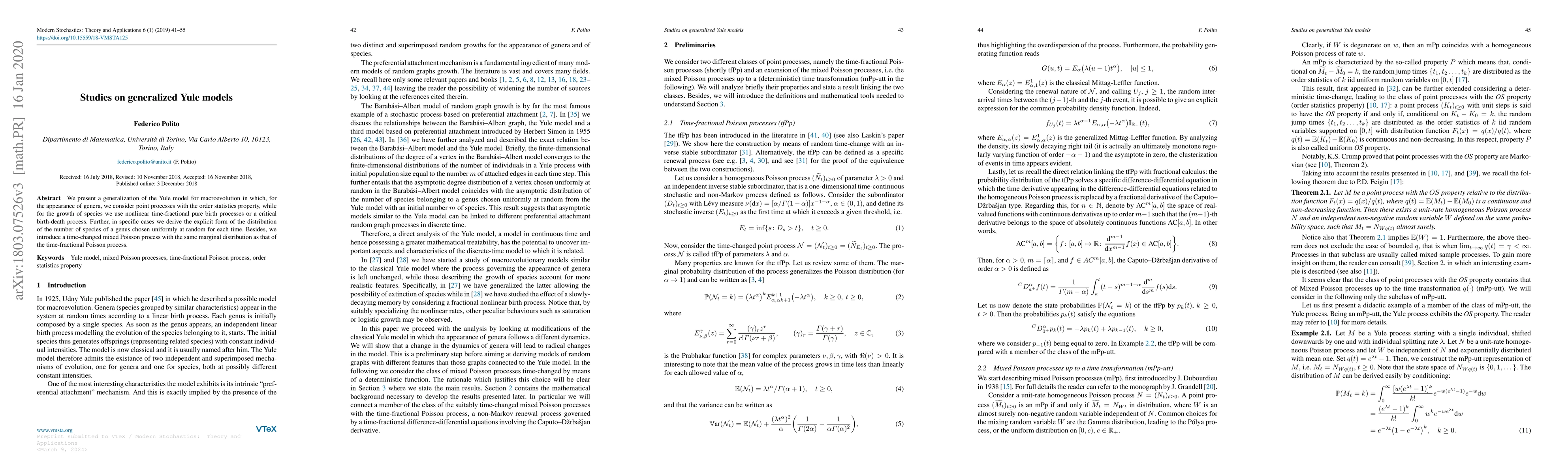 We present a generalization of the Yule model for macroevolution in which, for the appearance of genera, we consider point processes with the order statistics property, while for the growth of species we use nonlinear time-fractional pure birth processes or a critical birth-death process. Further, in specific cases we derive the explicit form of the distribution of the number of species of a genus chosen uniformly at random for each time. Besides, we introduce a time-changed mixed Poisson process with the same marginal distribution as that of the time-fractional Poisson process.