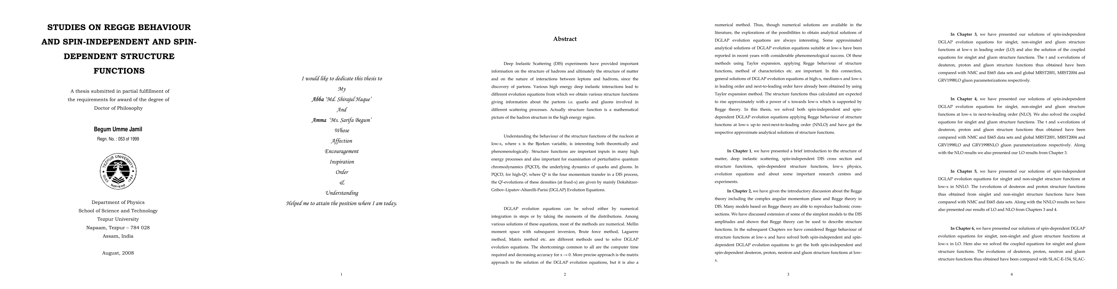 Deep Inelastic Scattering (DIS) experiments have provided important information on the structure of hadrons and ultimately the structure of matter and on the nature of interactions between leptons and hadrons, since the discovery of partons. Various high energy deep inelastic interactions lead to different evolution equations from which we obtain various structure functions giving information about the partons i.e. quarks and gluons involved in different scattering processes. Actually structure function is a mathematical picture of the hadron structure in the high energy region. Understanding the behaviour of the structure functions of the nucleon at low-x, where x is the Bjorken variable, is interesting both theoretically and phenomenologically. Structure functions are important inputs in many high energy processes and also important for examination of perturbative quantum chromodynamics (PQCD), the underlying dynamics of quarks and gluons. In PQCD, for high-Q2, where Q2 is the four momentum transfer in a DIS process, the Q2-evolutions of these densities (at fixed-x) are given by mainly Dokshitzer-Gribov-Lipatov-Altarelli-Parisi (DGLAP) Evolution Equations. In this thesis, we solved both spin-independent and spin-dependent DGLAP evolution equations applying Regge behaviour of structure functions at low-x up-to next-next-to-leading order (NNLO) and have got the respective approximate analytical solutions of structure functions.