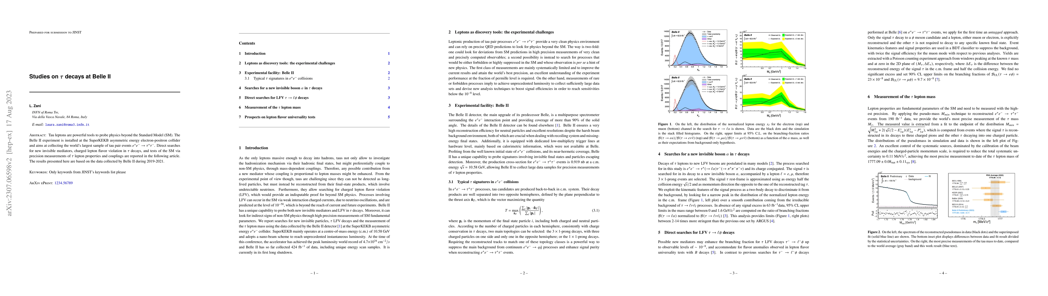This research is crucial for probing physics beyond the Standard Model using tau decays, which can provide evidence for new invisible mediators, charged lepton flavor violation, and precise measurements of $\tau$ lepton properties. These studies can potentially uncover new physics and contribute to our understanding of fundamental particles and forces.
