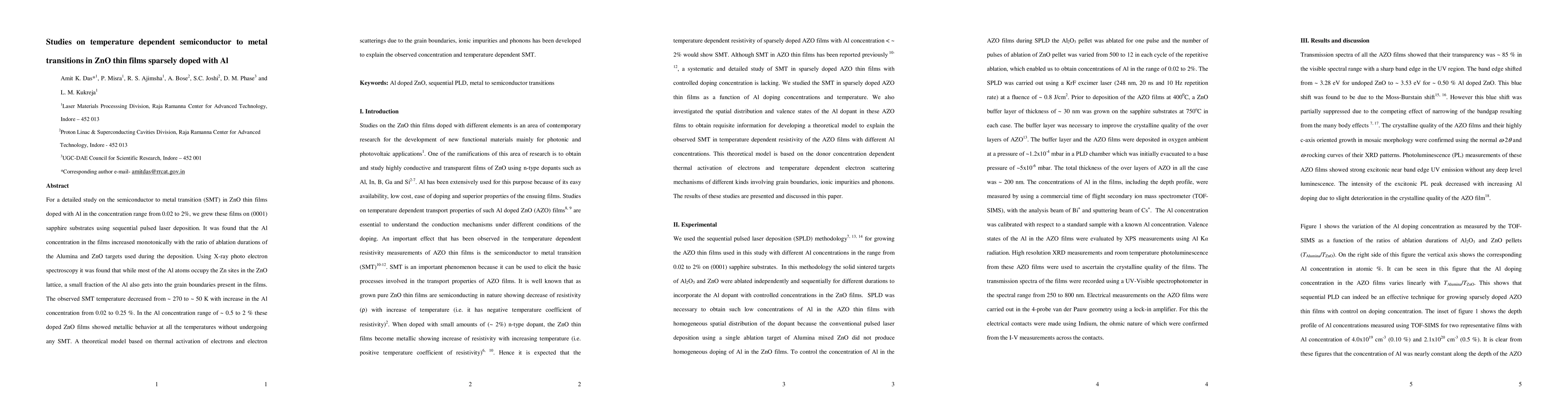 This study investigates the temperature-dependent semiconductor to metal transition (SMT) in ZnO thin films doped with aluminum (Al) using pulsed laser deposition. The SMT temperature decreased significantly with increasing Al concentration, and films with higher Al concentrations displayed metallic behavior across all temperatures.