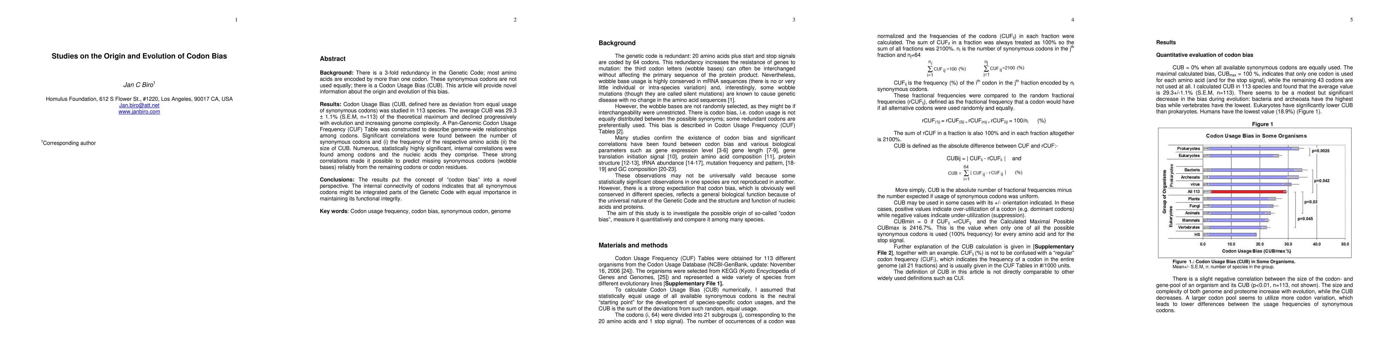 This study investigates the origin and evolution of Codon Usage Bias (CUB) across 113 species, revealing that CUB declines with increasing genome complexity and that internal correlations among codons suggest they are integral parts of the Genetic Code with equal functional importance.