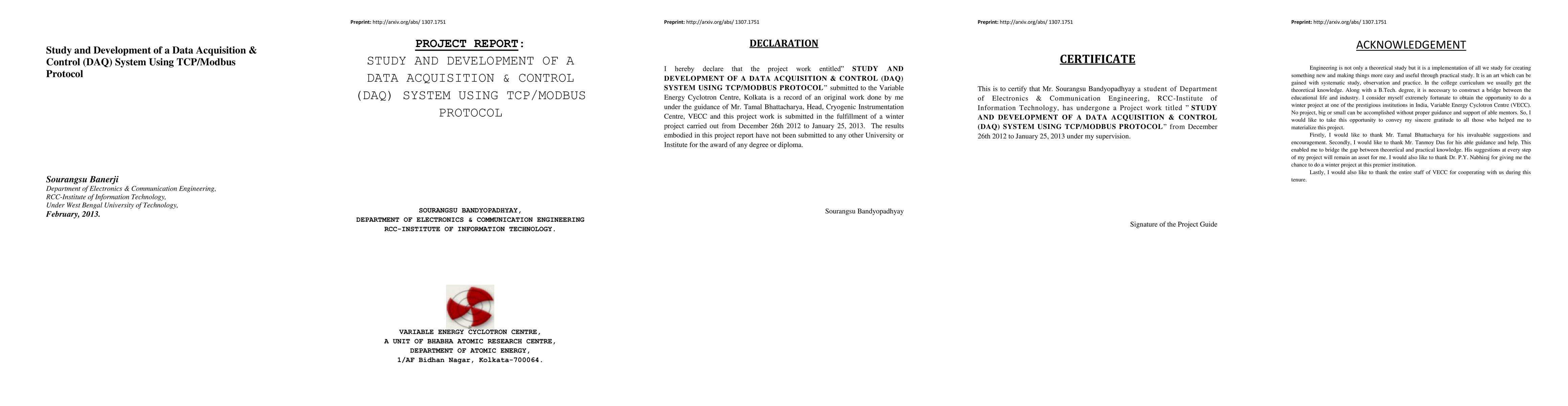 The aim of the project was to develop a HMI (Human-Machine Interface) with the help of which a person could remotely control and monitor the Vacuum measurement system. The Vacuum measurement system was constructed using a DAQ (Data Acquisition & Control) implementation instead of a PLC based implementation because of the cost involvement and complexity involved in deployment when only one basic parameter i.e. vacuum is required to be measured. The system is to be installed in the Superconducting Cyclotron section of VECC. The need for remote monitoring arises as during the operation of the K500 Superconducting Cyclotron, people are not allowed to enter within a certain specified range due to effective ion radiation. Using the designed software i.e. HMI the following objective of remote monitoring could be achieved effortlessly from any area which is in the safe zone. Moreover the software was designed in a way that data could be recorded real time and in an unmanned way. The hardware is also easy to setup and overcomes the complexity involved in interfacing a PLC with other hardware. The deployment time is also quite fast. Lastly, the practical results obtained showed an appreciable degree of accuracy of the system and friendliness with the user.