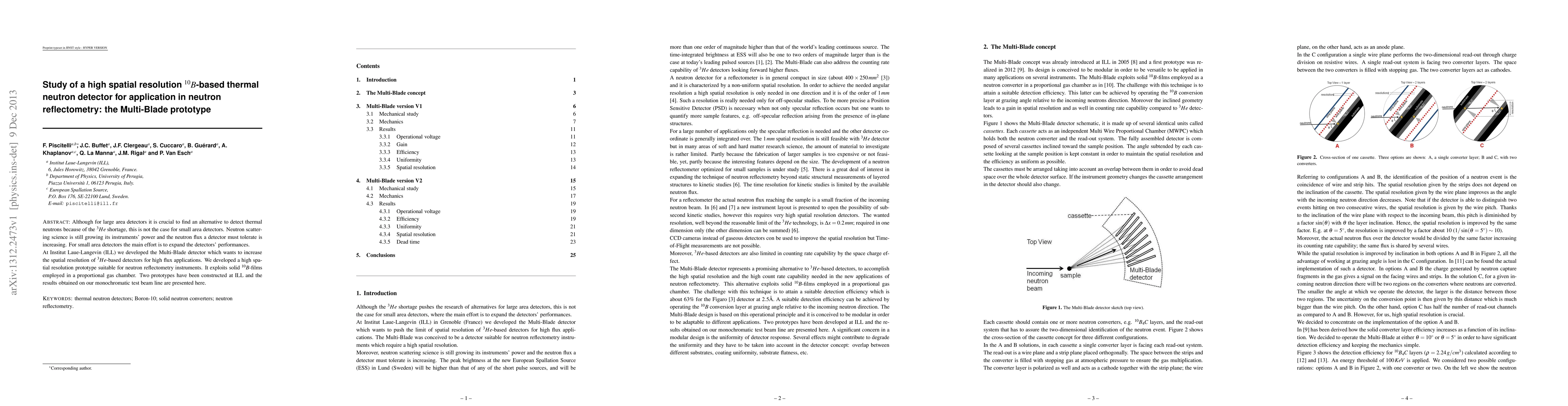 Although for large area detectors it is crucial to find an alternative to detect thermal neutrons because of the 3He shortage, this is not the case for small area detectors. Neutron scattering science is still growing its instruments' power and the neutron flux a detector must tolerate is increasing. For small area detectors the main effort is to expand the detectors' performances. At Institut Laue-Langevin (ILL) we developed the Multi-Blade detector which wants to increase the spatial resolution of 3He-based detectors for high flux applications. We developed a high spatial resolution prototype suitable for neutron reflectometry instruments. It exploits solid 10B-films employed in a proportional gas chamber. Two prototypes have been constructed at ILL and the results obtained on our monochromatic test beam line are presented here.