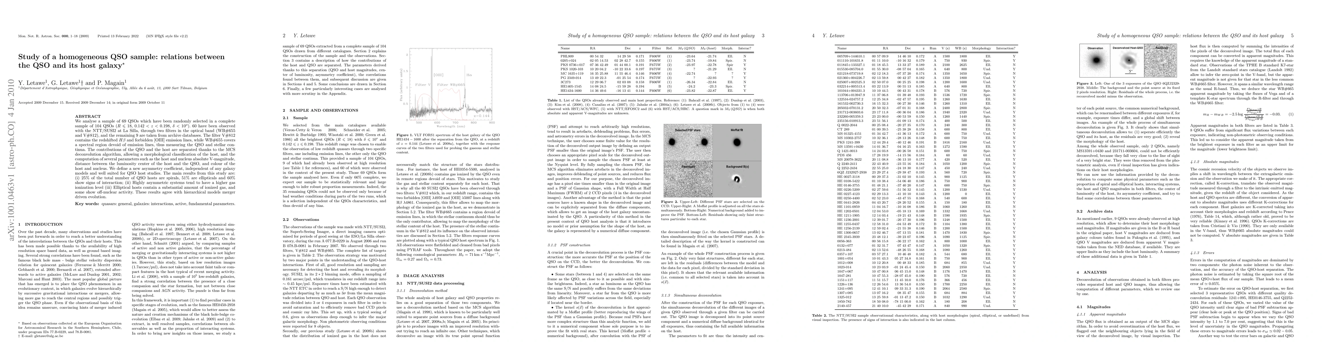 We analyse a sample of 69 QSOs which have been randomly selected in a complete sample of 104 QSOs (R<18, 0.142 < z < 0.198). 60 have been observed with the NTT/SUSI2 at La Silla, through two filters in the optical band (WB#655 and V#812), and the remaining 9 are taken from archive databases. The filter V#812 contains the redshifted Hbeta and forbidden [OIII] emission lines, while WB#655 covers a spectral region devoid of emission lines, thus measuring the QSO and stellar continua. The contributions of the QSO and the host are separated thanks to the MCS deconvolution algorithm, allowing a morphological classification of the host, and the computation of several parameters such as the host and nucleus absolute V-magnitude, distance between the luminosity center of the host and the QSO, and colour of the host and nucleus. We define a new asymmetry coefficient, independent of any galaxy models and well suited for QSO host studies. The main results from this study are: (i) 25% of the total number of QSO hosts are spirals, 51% are ellipticals and 60% show signs of interaction; (ii) Highly asymmetric systems tend to have a higher gas ionization level (iii) Elliptical hosts contain a substantial amount of ionized gas, and some show off-nuclear activity. These results agree with hierarchical models merger driven evolution.