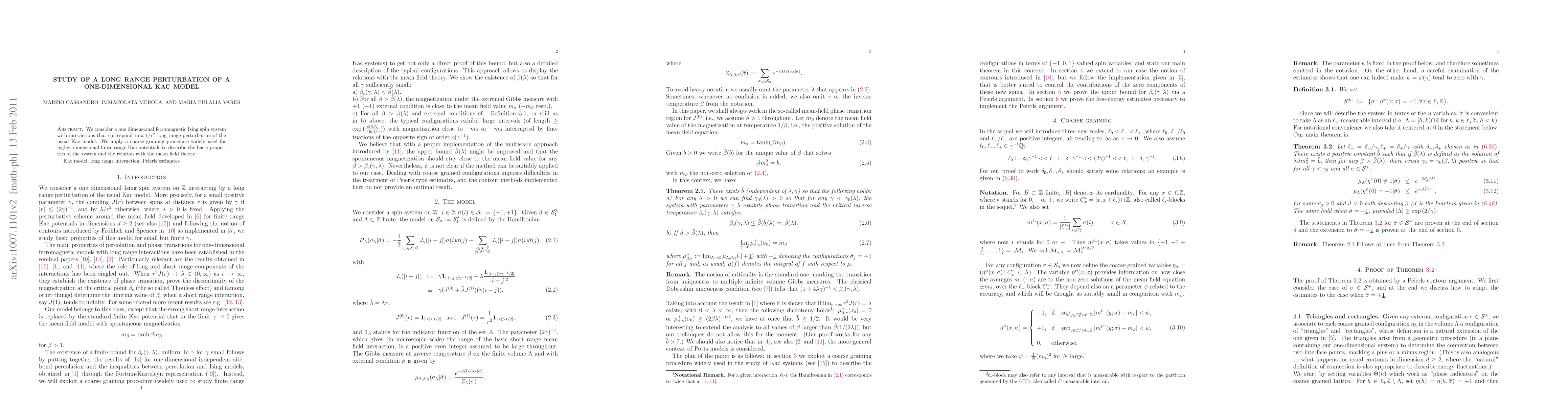 We consider a one dimensional ferromagnetic Ising spin system with interactions that correspond to a $1/r^2$ long range perturbation of the usual Kac model. We apply a coarse graining procedure, widely used for higher-dimensional finite range Kac potentials, to describe the basic properties of the system and the relation with the mean field theory.