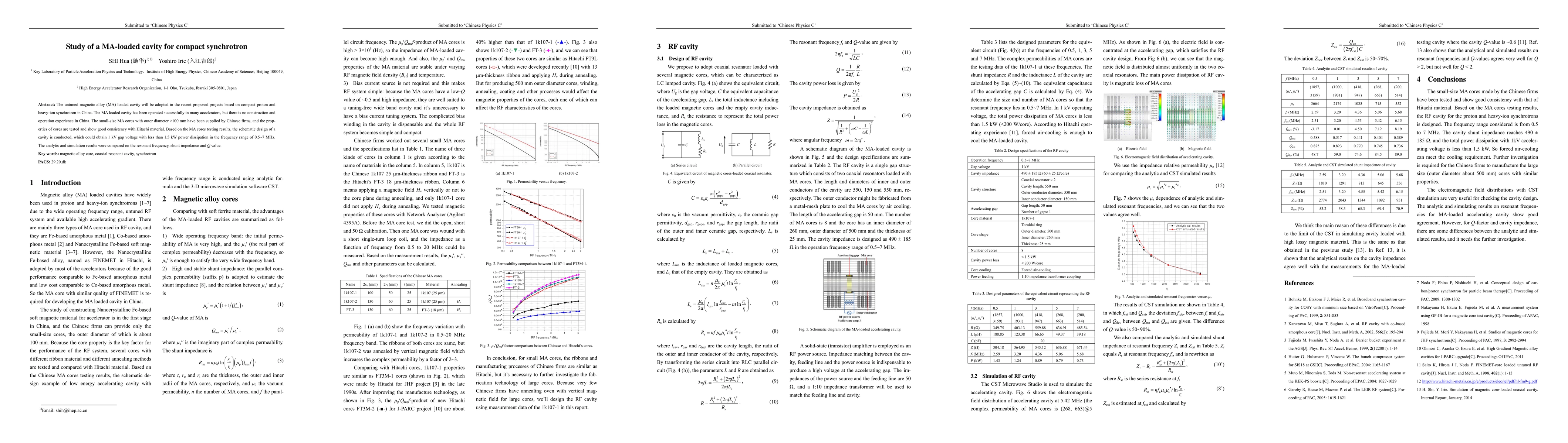 The untuned magnetic alloy (MA) loaded cavity will be adopted in the recent proposed projects based on compact proton and heavy-ion synchrotron in China. The MA loaded cavity has been operated successfully in many accelerators, but there is no construction and operation experience in China. The small-size MA cores with outer diameter >100 mm have been supplied by Chinese firms, and the properties of cores are tested and show good consistency with Hitachi material. Based on the MA cores testing results, the schematic design of a cavity is conducted, which could obtain 1 kV gap voltage with less than 1.5 kW power dissipation in the frequency range of 0.5~7 MHz. The analytic and simulation results were compared on the resonant frequency, shunt impedance and Q value.