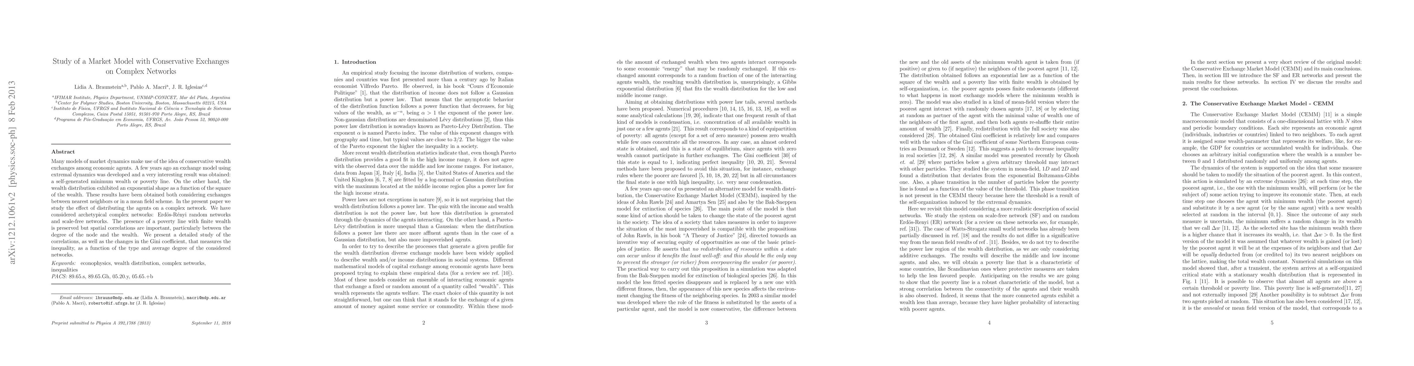 Many models of market dynamics make use of the idea of conservative wealth exchanges among economic agents. A few years ago an exchange model using extremal dynamics was developed and a very interesting result was obtained: a self-generated minimum wealth or poverty line. On the other hand, the wealth distribution exhibited an exponential shape as a function of the square of the wealth. These results have been obtained both considering exchanges between nearest neighbors or in a mean field scheme. In the present paper we study the effect of distributing the agents on a complex network. We have considered archetypical complex networks: Erd\"{o}s-R\'enyi random networks and scale-free networks. The presence of a poverty line with finite wealth is preserved but spatial correlations are important, particularly between the degree of the node and the wealth. We present a detailed study of the correlations, as well as the changes in the Gini coefficient, that measures the inequality, as a function of the type and average degree of the considered networks.
