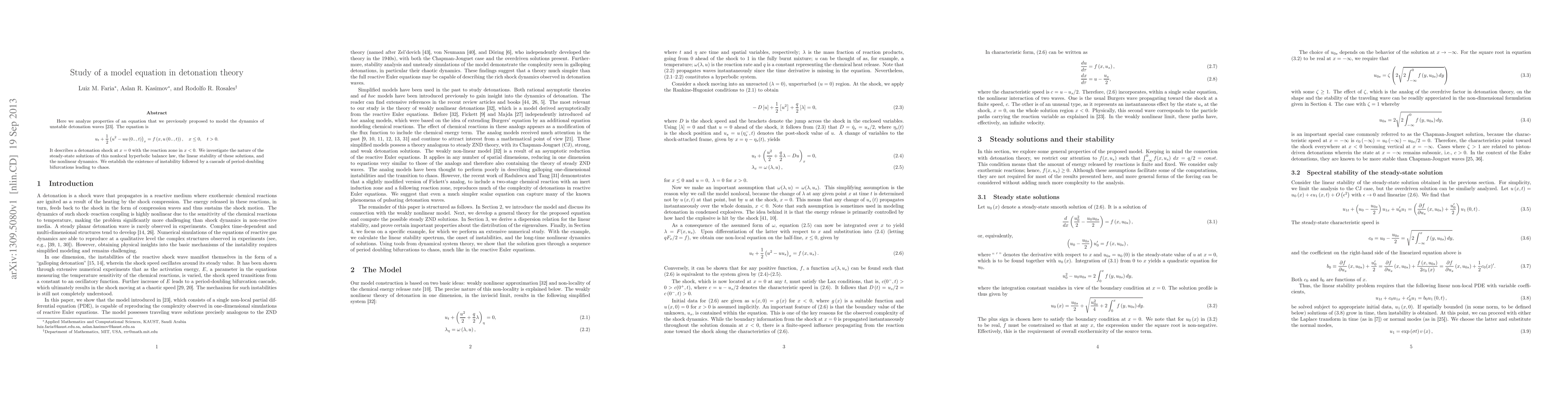 A study analyzes a model equation for detonation waves, finding instability followed by period-doubling bifurcations leading to chaos in the dynamics of unstable detonation waves.