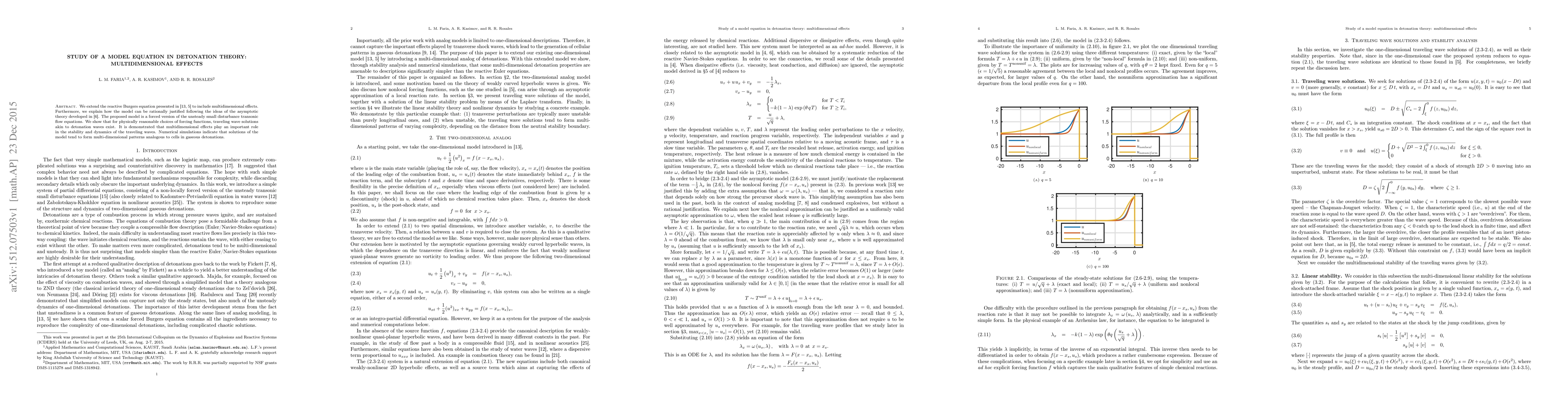 Researchers developed a model equation to study detonation waves in gases, incorporating multidimensional effects and demonstrating the formation of multi-dimensional patterns similar to those found in gaseous detonations.