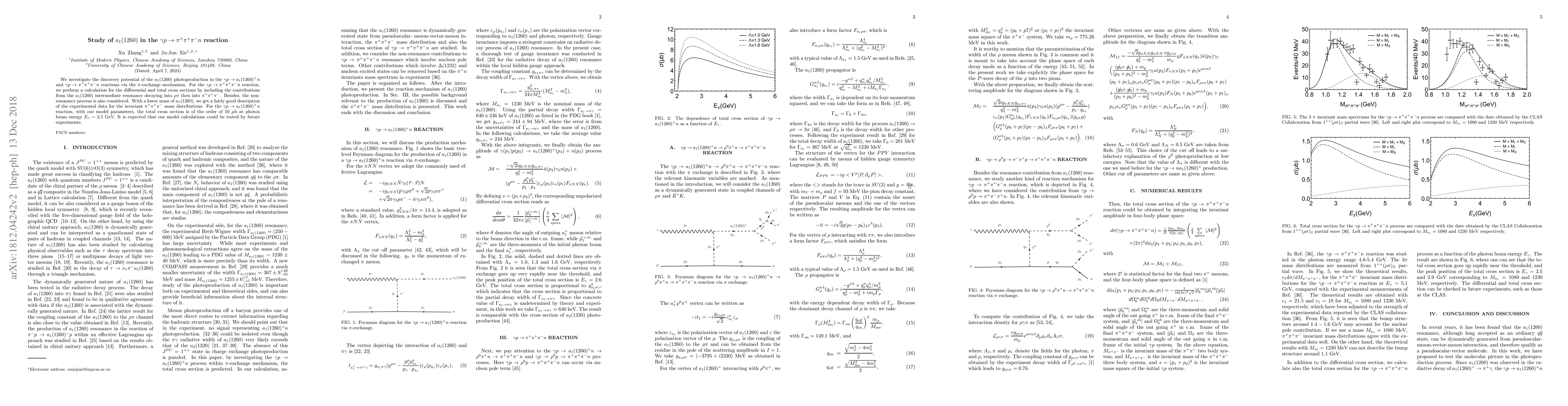We investigate the discovery potential of the $a_1(1260)$ photoproduction in the $\gamma p \to a_1(1260)^+ n$ and $\gamma p \to \pi^+\pi^+\pi^- n$ reactions via the $\pi$-exchange mechanism. For the $\gamma p \to \pi^+\pi^+\pi^- n$ reaction, we perform a calculation for the differential and total cross sections by including the contributions from the $a_1(1260)$ intermediate resonance decaying into $\rho \pi$ then into $\pi^+\pi^+\pi^-$. Besides, the non-resonance process is also considered. With a lower mass of $a_1(1260)$, we get a fairly good description of the experimental data for the invariant $\pi^+\pi^+\pi^-$ mass distributions. For the $\gamma p \to a_1(1260)^+ n$ reaction, with our model parameters, the total cross section is of the order of 10 $\mu$b at photon beam energy $E_{\gamma} \sim$ 2.5 GeV. It is expected that our model calculations could be tested by future experiments.