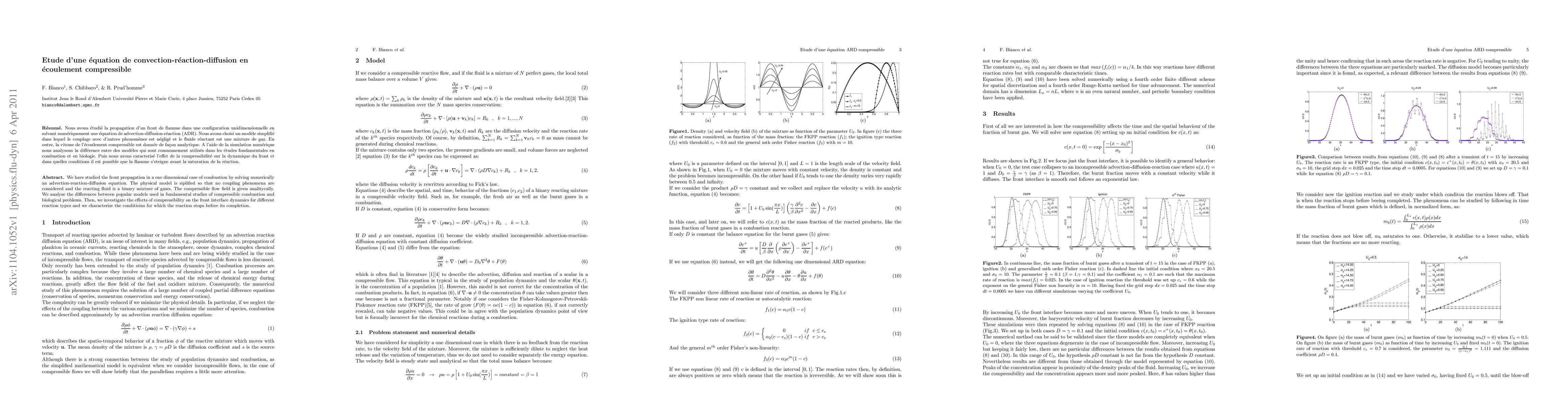 This study numerically solves an advection-reaction-diffusion equation to model front propagation in a simplified one-dimensional combustion scenario with a binary gas mixture. The research compares different models and examines the impact of compressibility on reaction dynamics and the conditions leading to incomplete reactions.