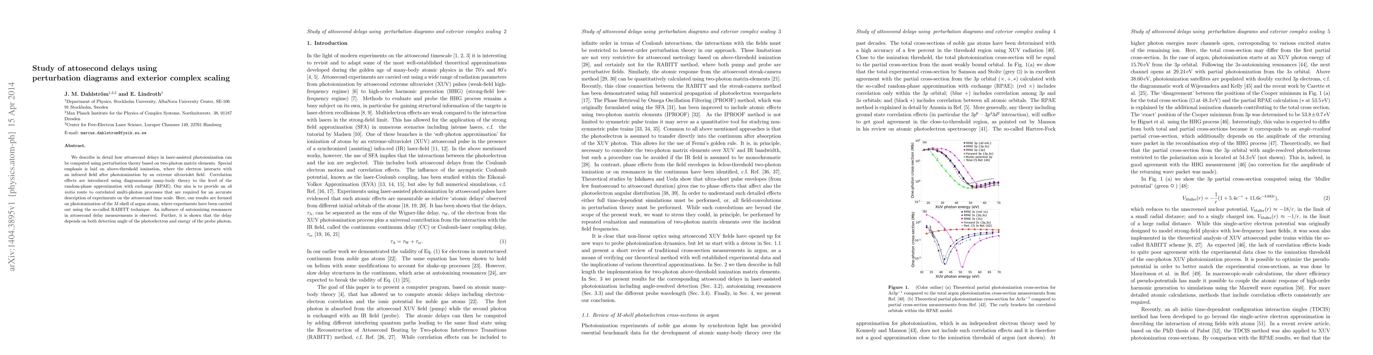 We describe in detail how attosecond delays in laser-assisted photoionization can be computed using perturbation theory based on two-photon matrix elements. Special emphasis is laid on above-threshold ionization, where the electron interacts with an infrared field after photoionization by an extreme ultraviolet field. Correlation effects are introduced using diagrammatic many-body theory to the level of the random-phase approximation with exchange (RPAE). Our aim is to provide an ab initio route to correlated multi-photon processes that are required for an accurate description of experiments on the attosecond time scale. Here, our results are focused on photoionization of the M -shell of argon atoms, where experiments have been carried out using the so-called RABITT technique. An influence of autoionizing resonances in attosecond delay measurements is observed. Further, it is shown that the delay depends on both detection angle of the photoelectron and energy of the probe photon.