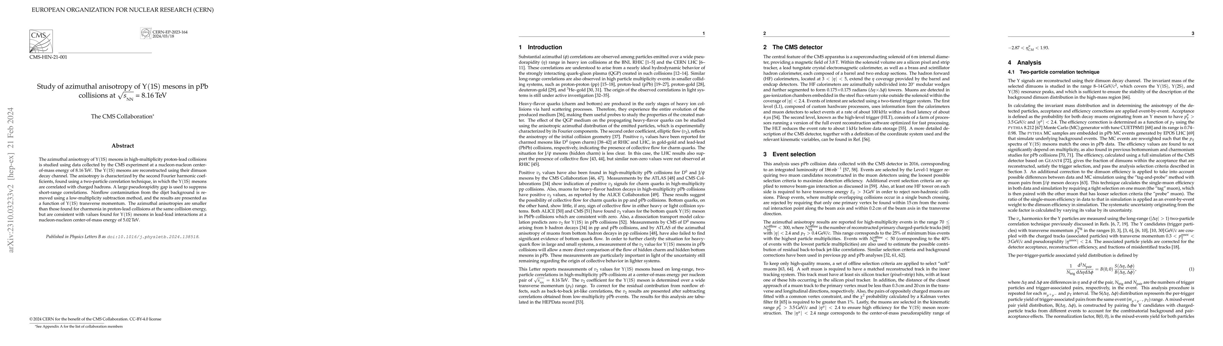 This study investigates the azimuthal anisotropy of $\Upsilon$(1S) mesons in high-multiplicity proton-lead collisions at 8.16 TeV using CMS data, finding smaller anisotropies compared to charmonia but consistent with $\Upsilon$(1S) in lead-lead collisions at 5.02 TeV. The anisotropy is measured via the second Fourier harmonic coefficients using a two-particle correlation technique.