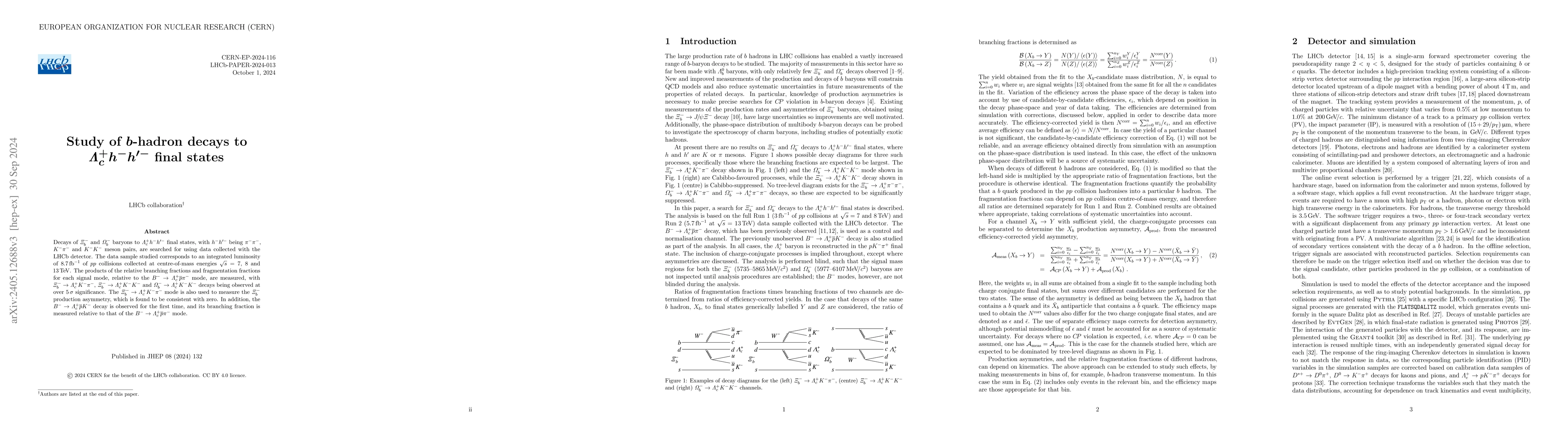 This study investigates $b$-hadron decays to $\Lambda_c^+ h^- h^{\prime -}$ final states using LHCb data corresponding to $8.7\,\mathrm{fb}^{-1}$ of $pp$ collisions. Decays of $\Xi_b^-$ and $\Omega_b^-$ baryons to $\Lambda_c^+ \pi^-\pi^-$, $\Lambda_c^+ K^-\pi^-$, and $\Lambda_c^+ K^-K^-$ are observed, with $\Xi_{b}^- \to\Lambda_{c}^+ K^- \pi^-$ used to measure the $\Xi_{b}^-$ production asymmetry.