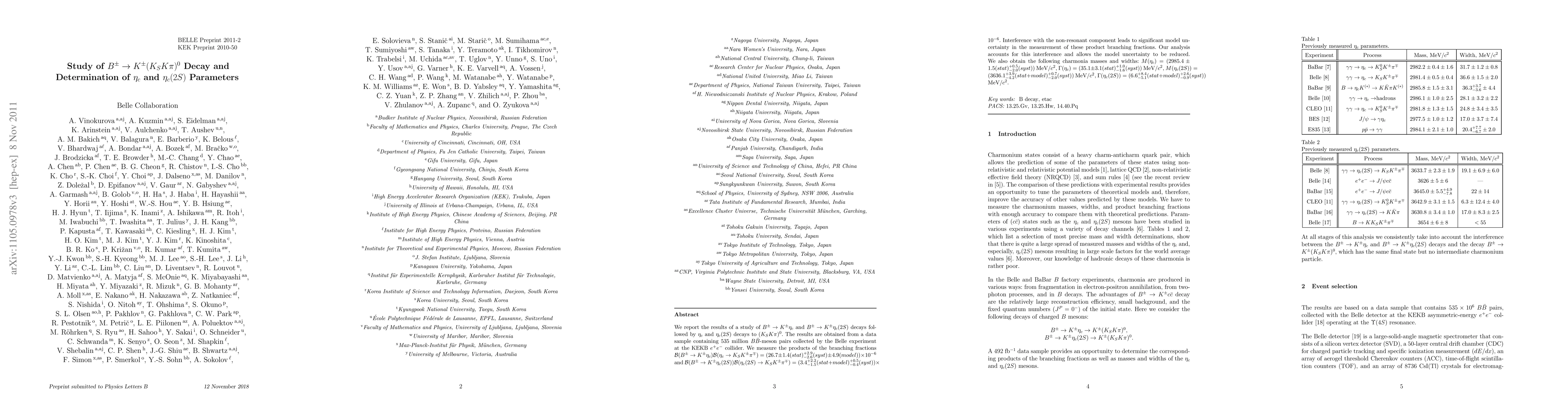 This paper reports on the study of $B^{\pm}\to K^{\pm}\eta_c$ and $B^{\pm}\to K^{\pm}\eta_c(2S)$ decays using data from the Belle experiment, measuring branching fractions and determining the masses and widths of $\eta_c$ and $\eta_c(2S)$ charmonia. The analysis accounts for interference effects, leading to refined parameter estimates.