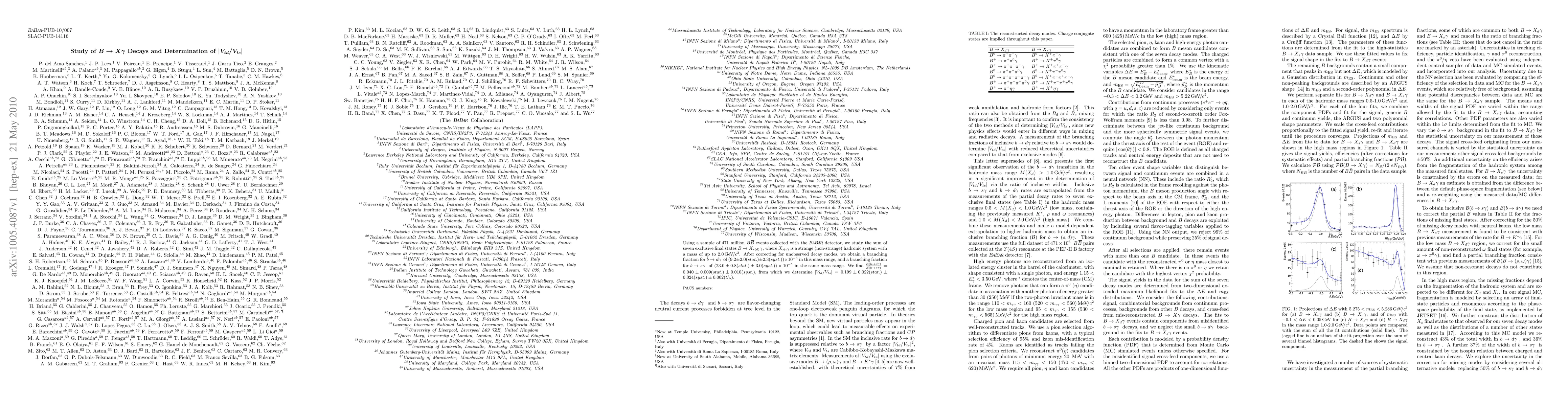 This paper analyzes B meson decays into gamma photons and hadronic systems, determining the branching fractions for B->X_s(d) gamma, and derives |V_td/V_ts| = 0.199 ± 0.022(stat.) ± 0.024(syst.) ± 0.002(th.) using data from 471 million BBbar events.