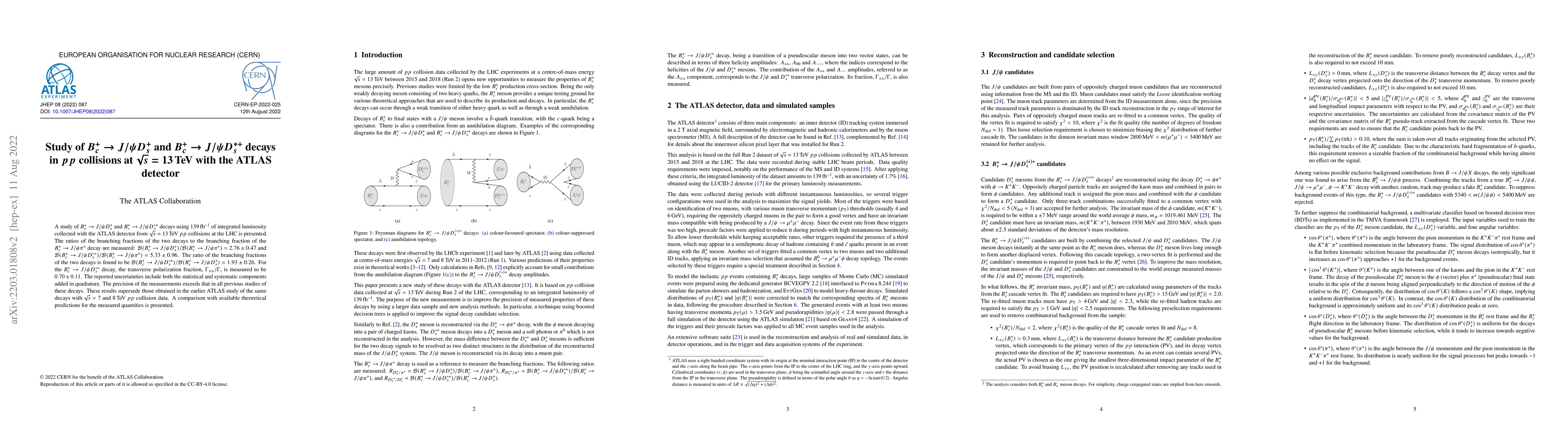 This study investigates $B_c^+$ decays into $J/\psi D_s^+$ and $J/\psi D_s^{*+}$ using 139 fb$^{-1}$ of data from 13 TeV $pp$ collisions at the LHC, measuring branching fraction ratios and the transverse polarization fraction of the $J/\psi D_s^{*+}$ decay, achieving higher precision than previous ATLAS studies.