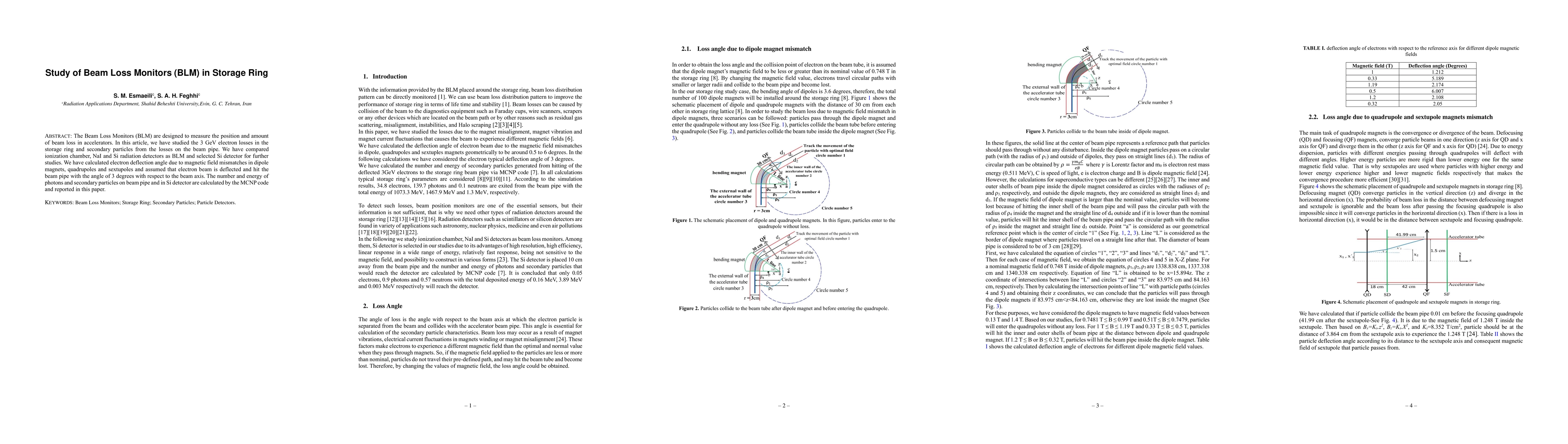 This paper investigates the use of Beam Loss Monitors (BLM) to measure electron losses in a 3 GeV storage ring, comparing ionization chamber, NaI, and Si radiation detectors. The Si detector was selected for further studies, and calculations of electron deflection angles and secondary particle production were performed using the MCNP code.