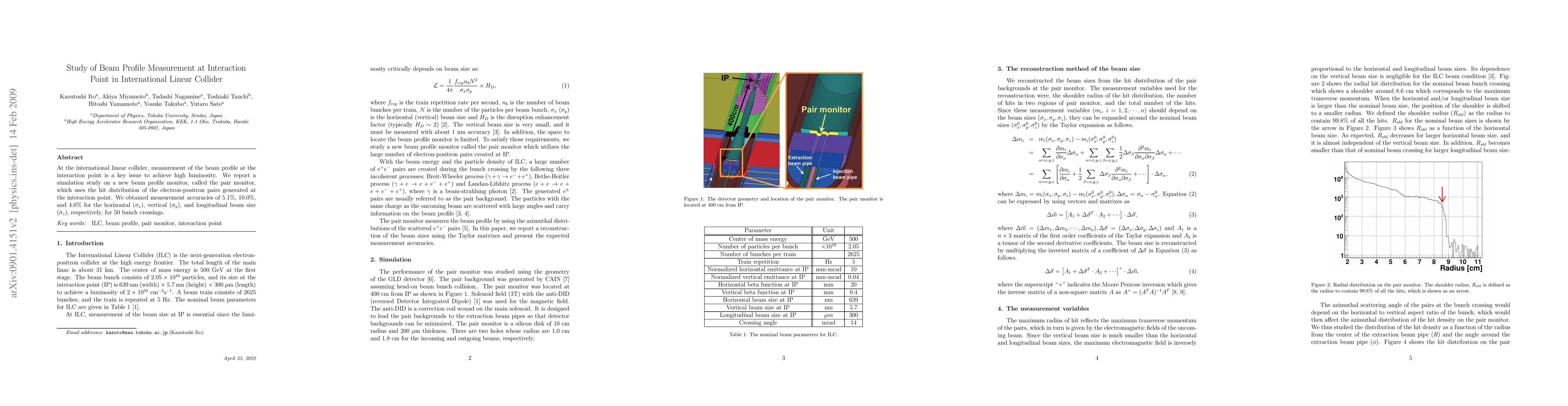 At the international linear collider, measurement of the beam profile at the interaction point is a key issue to achieve high luminosity. We report a simulation study on a new beam profile monitor, called the pair monitor, which uses the hit distribution of the electron-positron pairs generated at the interaction point. We obtained measurement accuracies of 5.1%, 10.0%, and 4.0% for the horizontal, vertical, and longitudinal beam size, respectively, for 50 bunch crossings.