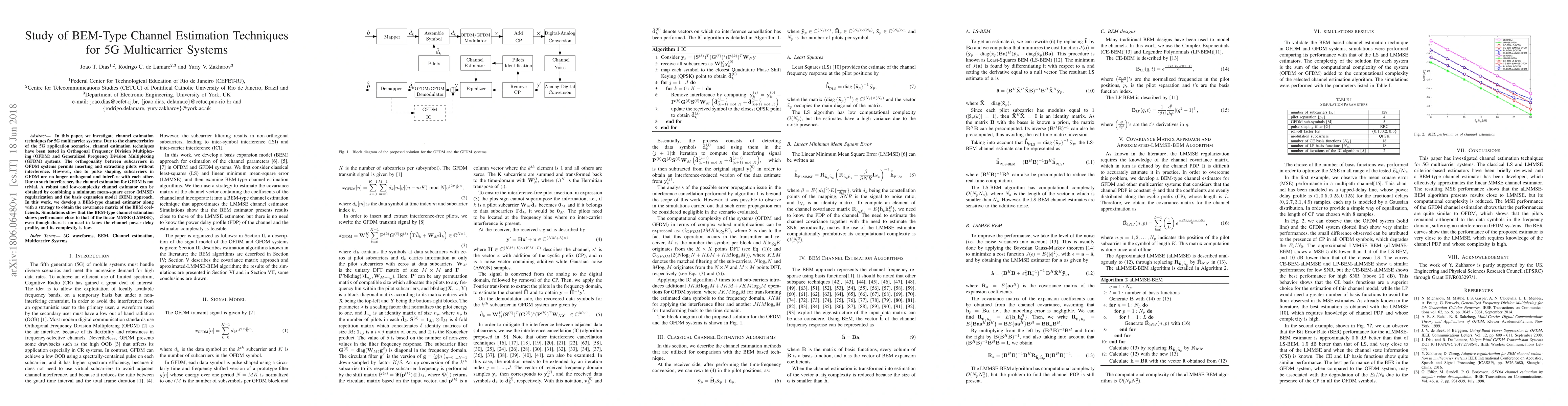 This study investigates channel estimation techniques for 5G multicarrier systems, proposing a BEM-type estimator with low complexity that matches the performance of LMMSE without needing to know the channel power delay profile.