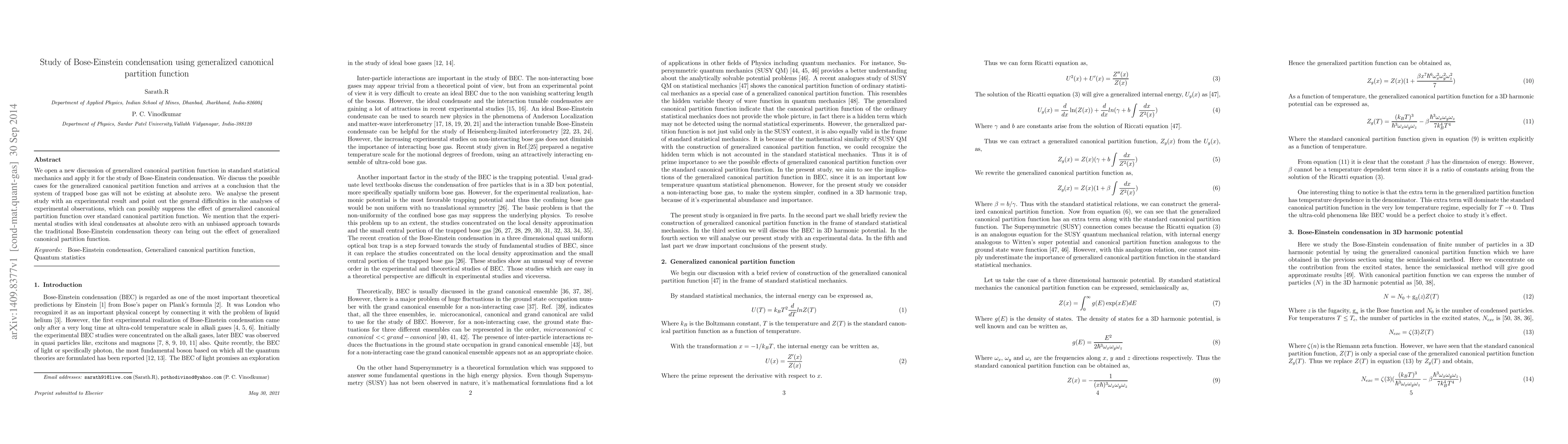 This paper explores the generalized canonical partition function in statistical mechanics and applies it to Bose-Einstein condensation, concluding that trapped Bose gas cannot exist at absolute zero. It highlights experimental challenges in observing the effects of the generalized partition function and suggests unbiased studies of ideal condensates could reveal its influence.