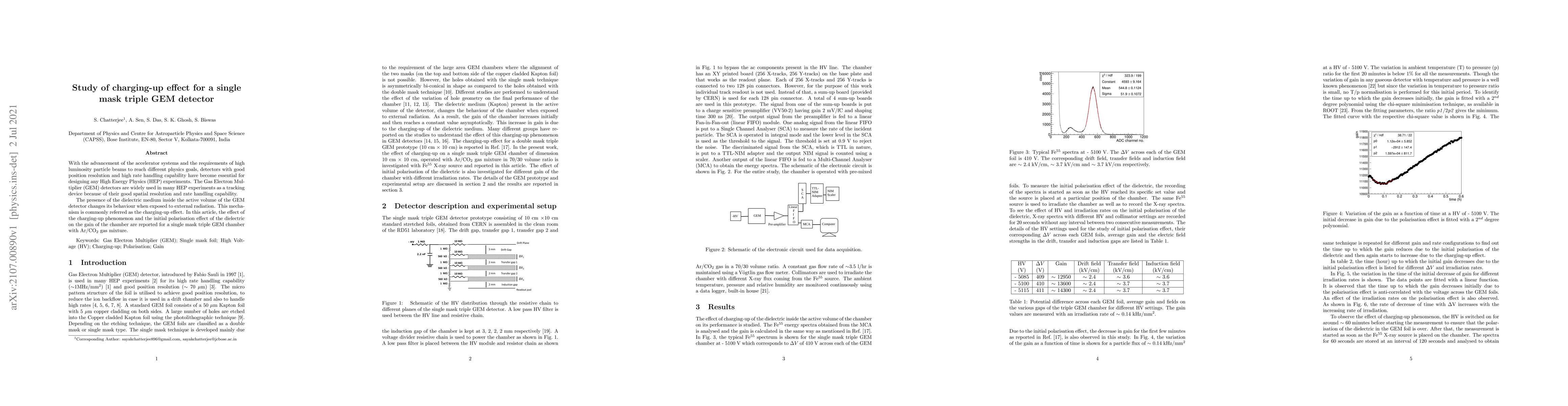 This study investigates the charging-up effect and initial polarization impact on the gain of a single mask triple Gas Electron Multiplier (GEM) detector using an Ar/CO2 gas mixture, crucial for high-rate handling and spatial resolution in High Energy Physics experiments.