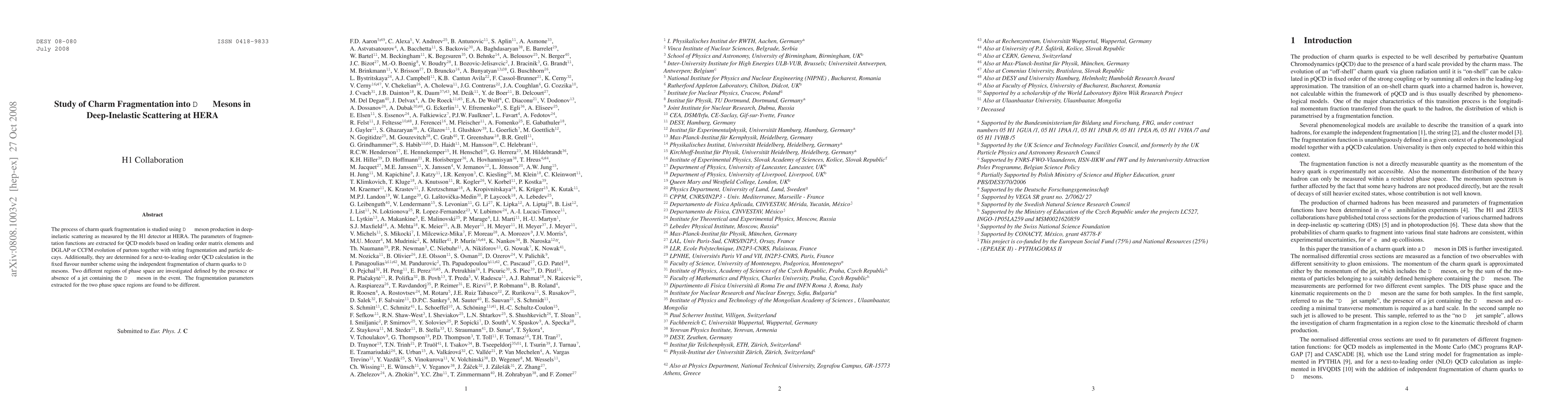 This study investigates charm quark fragmentation into $D^{*\pm}$ mesons in deep-inelastic scattering using the H1 detector at HERA, focusing on two distinct phase space regions based on the presence of a jet. Parameters for fragmentation functions are derived from both leading order QCD models and a next-to-leading order calculation.