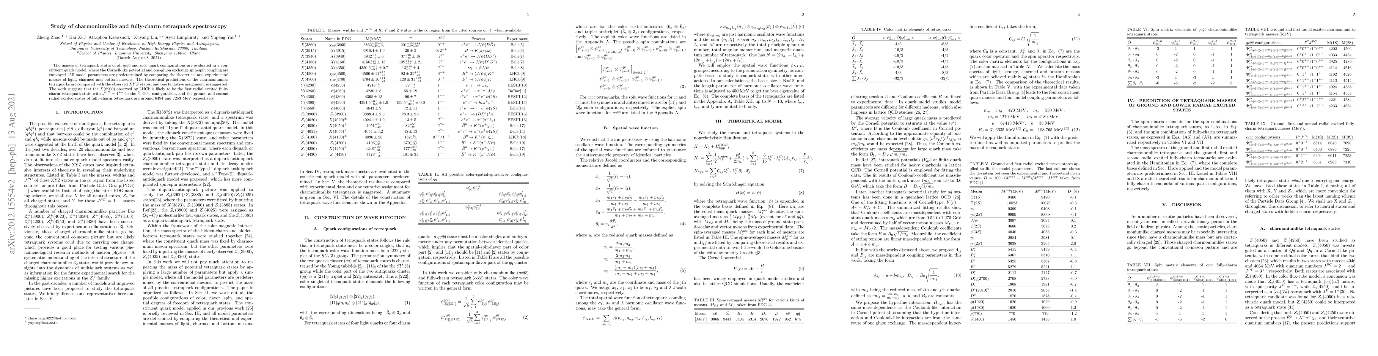 The masses of tetraquark states of all $qc\bar q \bar c$ and $cc\bar c \bar c$ quark configurations are evaluated in a constituent quark model, where the Cornell-like potential and one-gluon exchange spin-spin coupling are employed. All model parameters are predetermined by comparing the theoretical and experimental masses of light, charmed and bottom mesons. The theoretical predictions of the charmoniumlike tetraquarks are compared with the observed $XYZ$ states, and one tentative assignment is suggested. The work suggests that the $X(6900)$ observed by LHCb is likely to be the first radial excited fully-charm tetraquark state with $J^{PC} = 1^{+-}$ in the $\bar 3_c \otimes 3_c$ configuration, and the ground and second radial excited states of fully-charm tetraquark are around $6494$ and $7253$ MeV respectively.