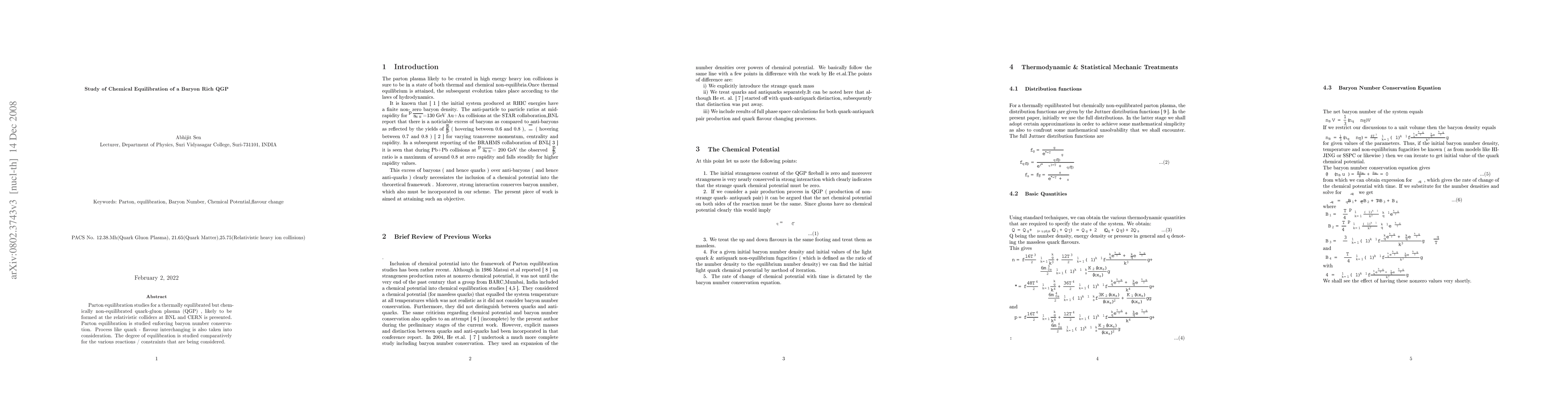 Parton equilibration studies for thermally equilibrated but chemically non-equilibrated quark-gluon-plasma (QGP), likely to be formed at the relativistic colliders at BNL and CERN is presented.Parton equilibration is studied enforcing baryon number conservation. Process like quark-flavor interchanging is also taken into consideration.The degree of equilibration is studied comparatively for the various reactions/ constraints that are being considered.