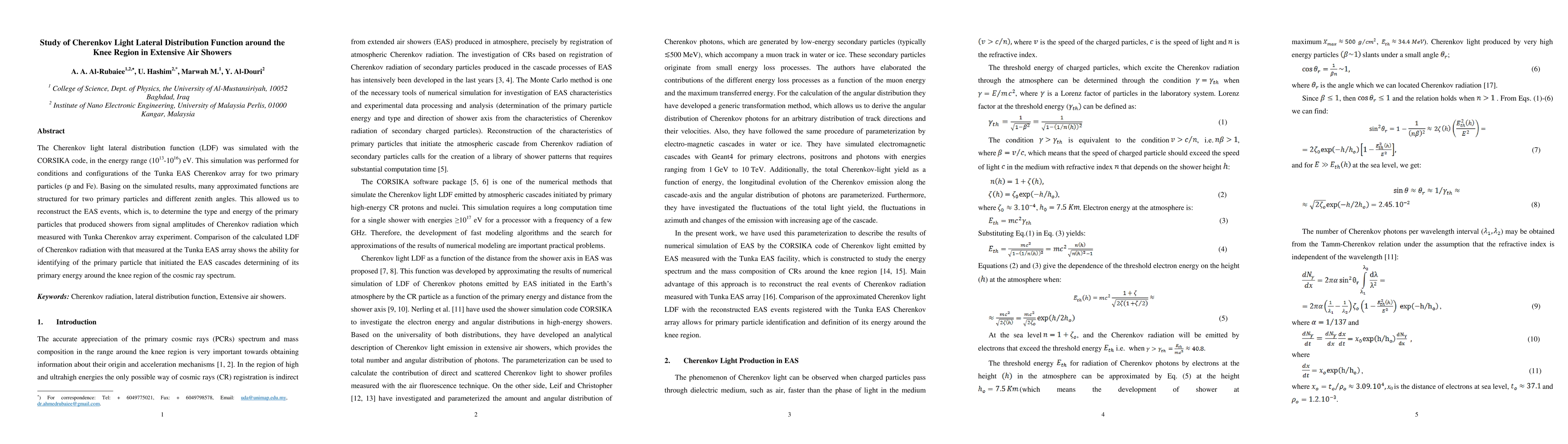 The Cherenkov light lateral distribution function (LDF) was simulated with the CORSIKA code, in the energy range (10^13-10^16) eV. This simulation was performed for conditions and configurations of the Tunka EAS Cherenkov array for two primary particles (p and Fe). Basing on the simulated results, many approximated functions are structured for two primary particles and different zenith angles. This allowed us to reconstruct the EAS events, which is, to determine the type and energy of the primary particles that produced showers from signal amplitudes of Cherenkov radiation which measured with Tunka Cherenkov array experiment. Comparison of the calculated LDF of Cherenkov radiation with that measured at the Tunka EAS array shows the ability for identifying of the primary particle that initiated the EAS cascades determining of its primary energy around the knee region of the cosmic ray spectrum.