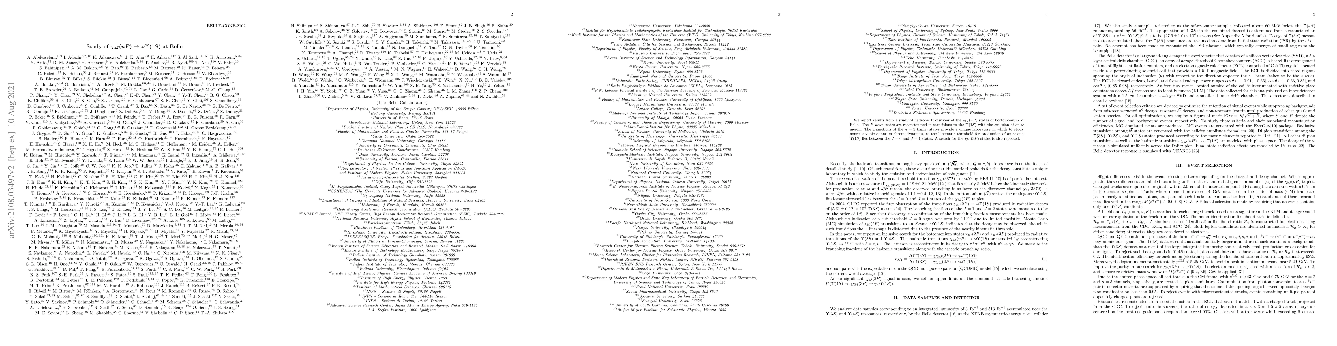 We report results from a study of hadronic transitions of the $\chi_{bJ}(nP)$ states of bottomonium at Belle. The $P$-wave states are reconstructed in transitions to the $\Upsilon(1S)$ with the emission of an $\omega$ meson. The transitions of the $n=2$ triplet states provide a unique laboratory in which to study nonrelativistic quantum chromodynamics, as the kinematic threshold for production of an $\omega$ and $\Upsilon(1S)$ lies between the $J=0$ and $J=1$ states. A search for the $\chi_{bJ}(3P)$ states is also reported.